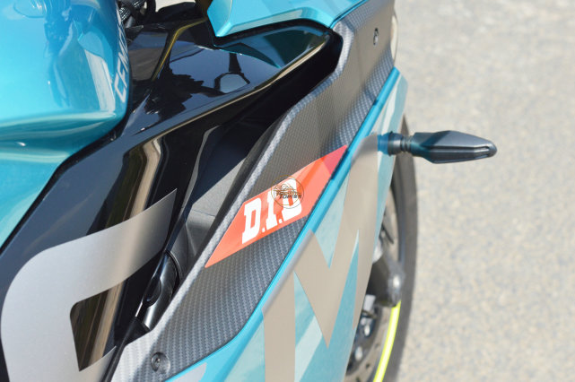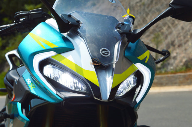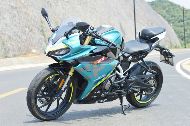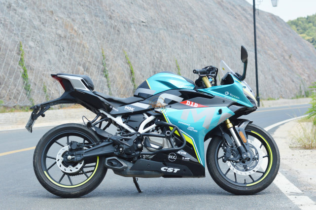 在小姐姐聊車之前,我們先來看下春風250SR賽道版的靜態(tài)部分,這臺車是綠松石藍版本,后來春風又推出一個火焰橙;藍色其實更貼合春風的品牌主題,但是橙色更騷氣,因為是durex的同款配色。