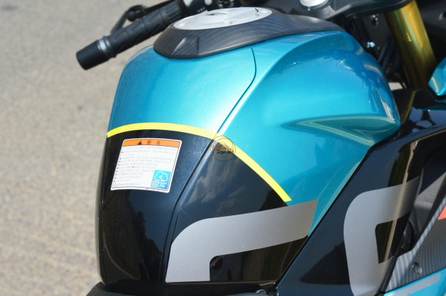 12升的油箱容量并不算大,續(xù)航能達到300多公里,對于跑車來說足夠了。而油箱的造型方面應該有所妥協(xié),可以看到整個油箱非常的纖細,這種收窄的設(shè)計讓春風250SR坐上去之后顯得非常苗條、輕巧。