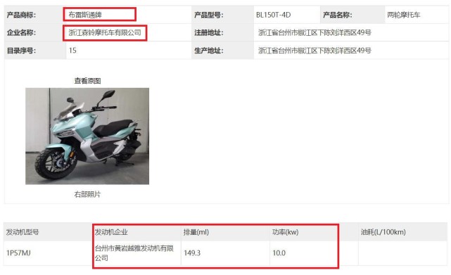 在工信部最新批次的公告當(dāng)中,有一臺ADV踏板摩托車出現(xiàn)了,這臺車來自浙江森鈴摩托車,用的產(chǎn)品商標(biāo)是布雷斯通牌,搭載一臺149.3cc排量的單缸發(fā)動機,最大功率有10kw,由臺州市黃巖越雅發(fā)動機提供。