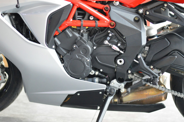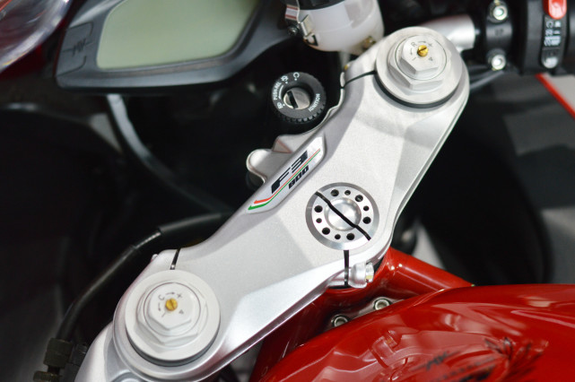 動力方面,F(xiàn)3 800搭載一臺,798cc排量,帶有反向旋轉(zhuǎn)曲軸的直列三缸發(fā)動機,源自MotoGP級別的技術(shù),最大馬力148匹/13,000轉(zhuǎn),最大功率88牛米/ 10,600轉(zhuǎn),配備滑動離合器和快速換檔器(升檔)。電控方面,配備八級牽引力控制系統(tǒng)、ABS(四級可調(diào)節(jié)包括關(guān)閉功能),四種騎行模式,MVICS集成控制系統(tǒng)等功能。
