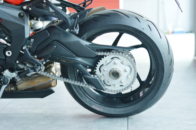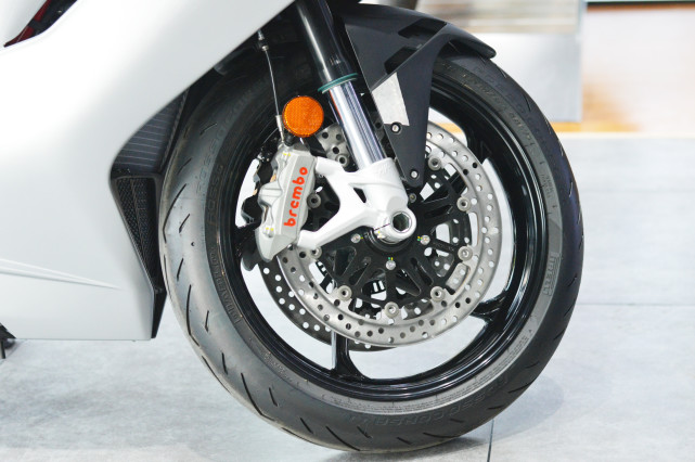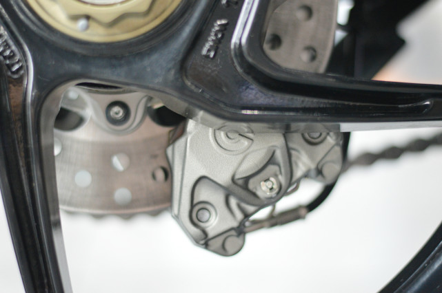 后剎車是Brembo的雙活塞卡鉗,搭配220mm單盤,配備Bosch 9 Plus Race Mode ABS,還提供后輪提升緩解功能。