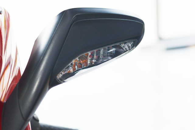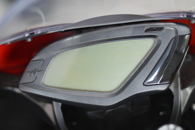 單色的液晶儀表盤,到底該不該吐槽?國外的Rosso版配備了最新的全彩儀表,就是不知道全彩儀表什么時候才能在MV Agusta車型當中普及,畢竟也是售價超過20萬的車型了。這塊儀表顯示一些必要信息以及集成控制系統(tǒng) (MVICS) 的讀數(shù)。除了基本數(shù)據(jù)之外,還具有檔位顯示器、牽引力控制級別、ABS級別等等。