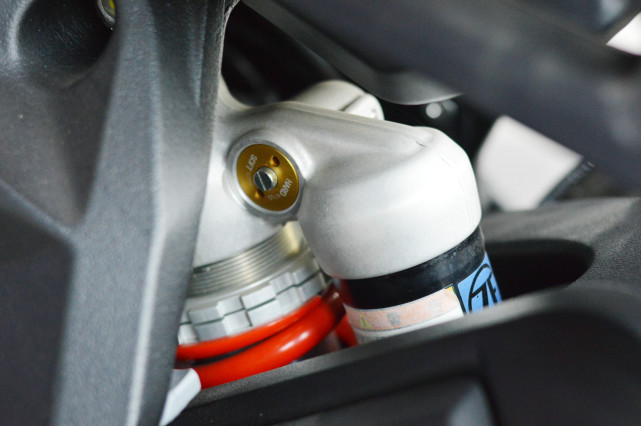 后避震是Progressive Sachs中置單避震,具有回彈和壓縮阻尼以及彈簧預載調(diào)節(jié)。
