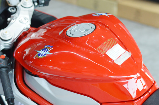 紅白相間的配色也是MV Agusta用了很多年的經(jīng)典配色,Rosso版采用了純紅色的涂裝,而RC版則是獨享拉花的設計。
