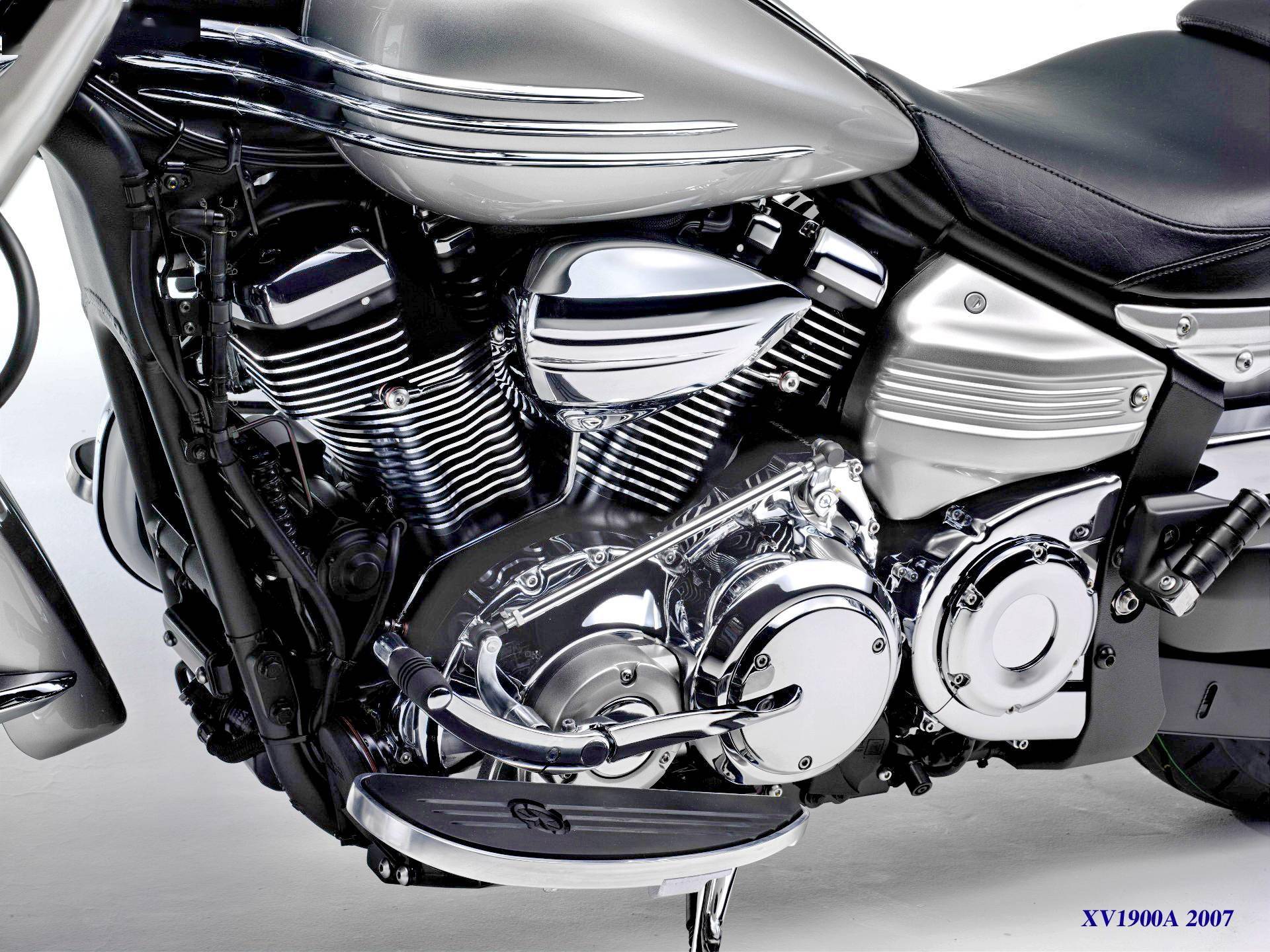 XV1900 的動(dòng)力單元依舊采用了風(fēng)冷(帶油冷裝置)四沖程 V 型 48 度兩氣缸、OHV 每氣缸四氣閥的型式,缸徑、行程修改為 100 mm x 118 mm,排氣量 1,854 cc,全面換裝了電子燃油噴注系統(tǒng),最大動(dòng)力輸出 99 匹/4,250 rpm(XV1900A 太子款),最大扭矩 166.7/2,250 rpm(XV1900A 太子款)。