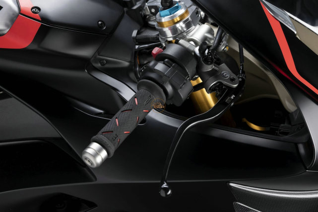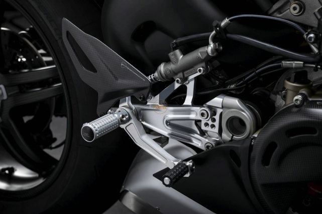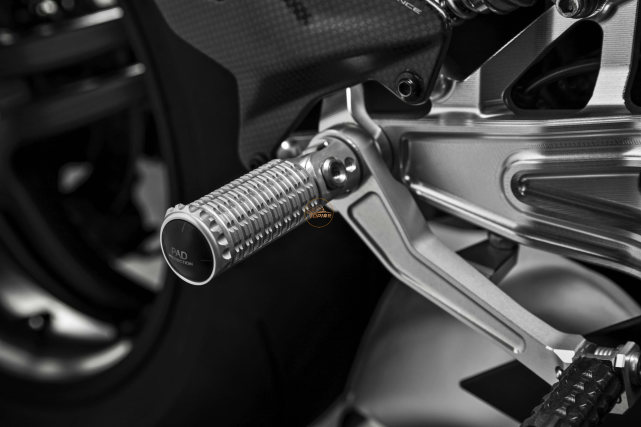 其他的不同之處,包括一個(gè)單獨(dú)編號(hào)的上三星、帶有碳纖維鞋跟護(hù)板的 Rizoma腳踏板,以及可調(diào)節(jié)的后制動(dòng)和換擋桿等等。