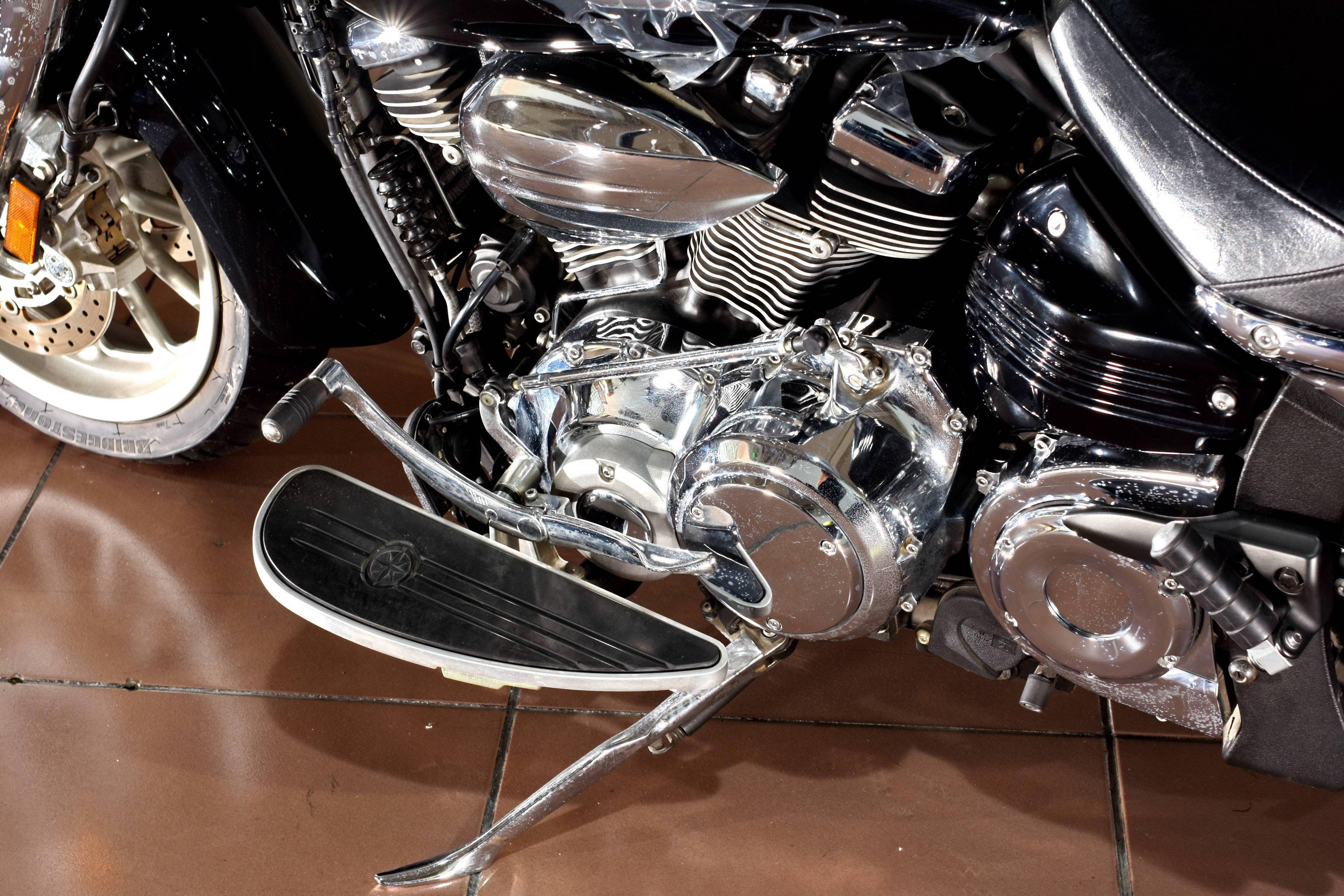 Star XV1900CTS Stratoliner S “ 同溫層客機(jī) ” 搭載風(fēng)冷(帶油冷裝置)四沖程 V 型 48 度兩氣缸、OHV(頂置氣門(mén))每氣缸四氣閥的 “ 頂桿 ” 發(fā)動(dòng)機(jī),缸徑、行程為 100 mm x 118 mm,排氣量 1,854 cc,配備了電子燃油噴注系統(tǒng),最大動(dòng)力輸出 99 匹/4,250 rpm,最大扭矩 166.7/2,250 rpm。