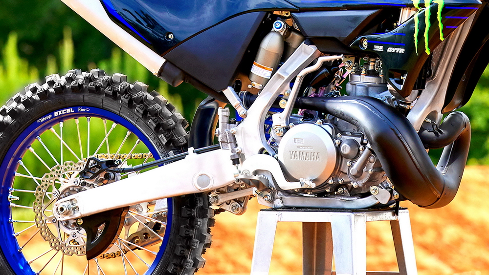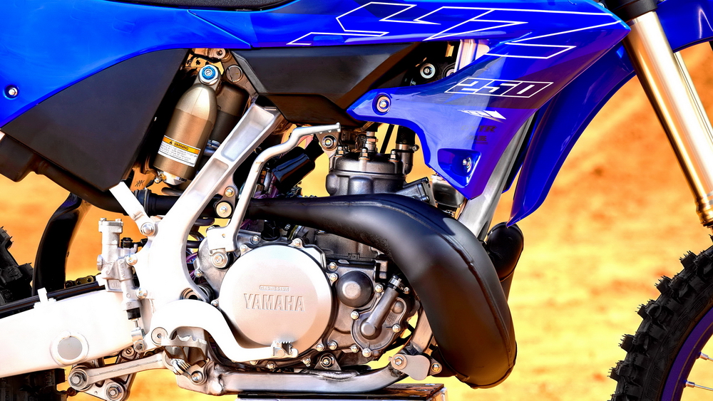 2022' YZ250 沿用了現(xiàn)行款的水冷兩沖程單氣缸發(fā)動(dòng)機(jī),缸徑、行程為 66.4 mm x 72 mm,排氣量 249 cc。配備了 Keihin PWK 38S/1 的化油器、YPVS 動(dòng)力閥、五檔的變速齒輪箱。與 2021 款相比,新的 2022 款在動(dòng)力單元方面,僅是對(duì)進(jìn)、排氣口進(jìn)行了修改。盡管廠方向來不會(huì)發(fā)布此類市售賽車的峰值馬力數(shù)據(jù),但一般的保守估計(jì)是 50 匹以上,否則也無(wú)法跟動(dòng)轍 60 匹馬力以上的四沖程 450 同級(jí)車型較量。而 2022' YZ250 的全車整備重量只有 103 公斤。