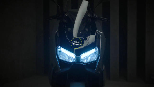 車頭部分除了能夠看到大面積的風(fēng)擋之外(似乎具備調(diào)節(jié)功能),這對很有科技感的LED大燈十分搶眼,大燈下面采用類似進(jìn)氣道的裝飾,這幅前臉有點FORZA750的味道,氣勢營造的相當(dāng)?shù)轿弧?/p>