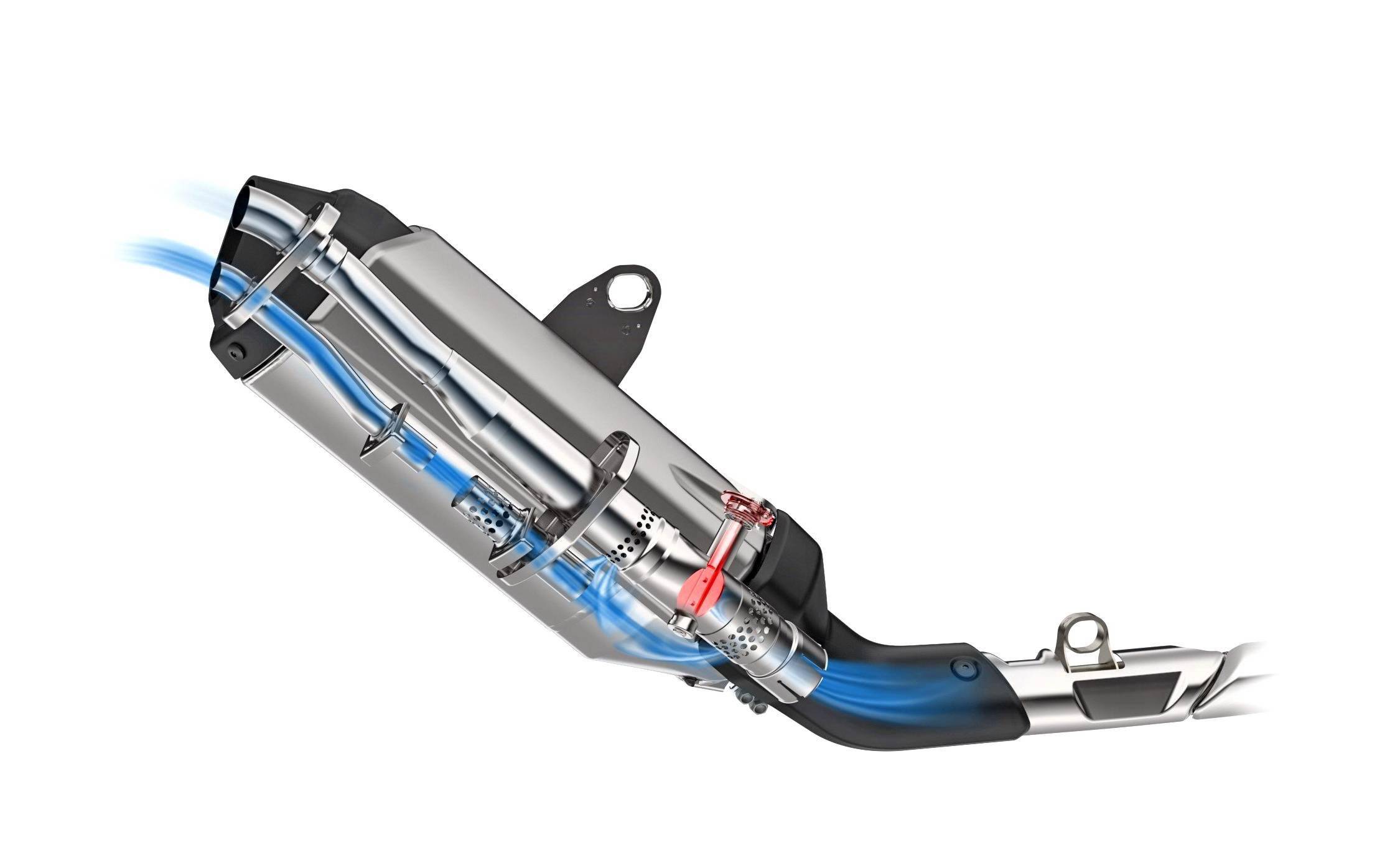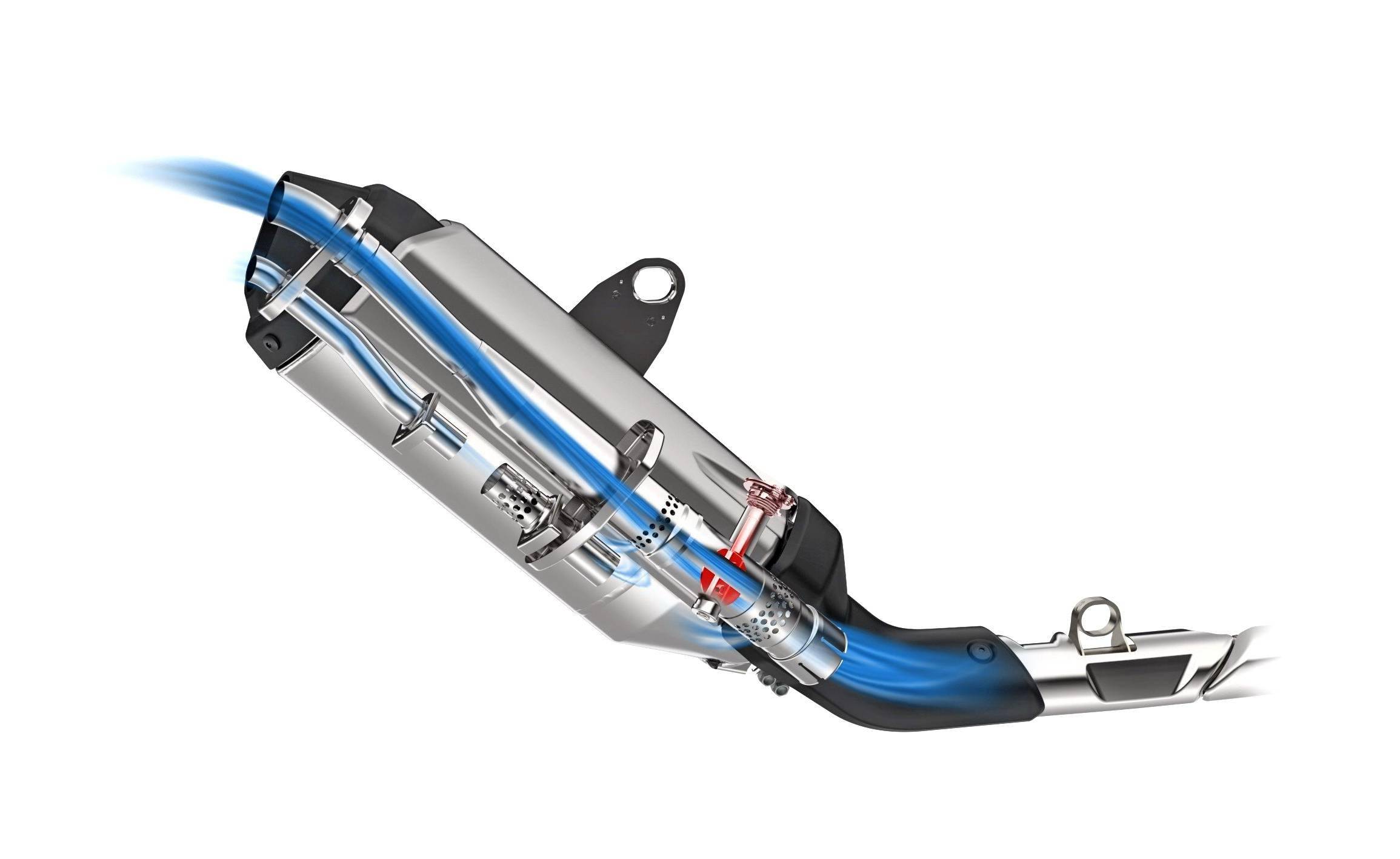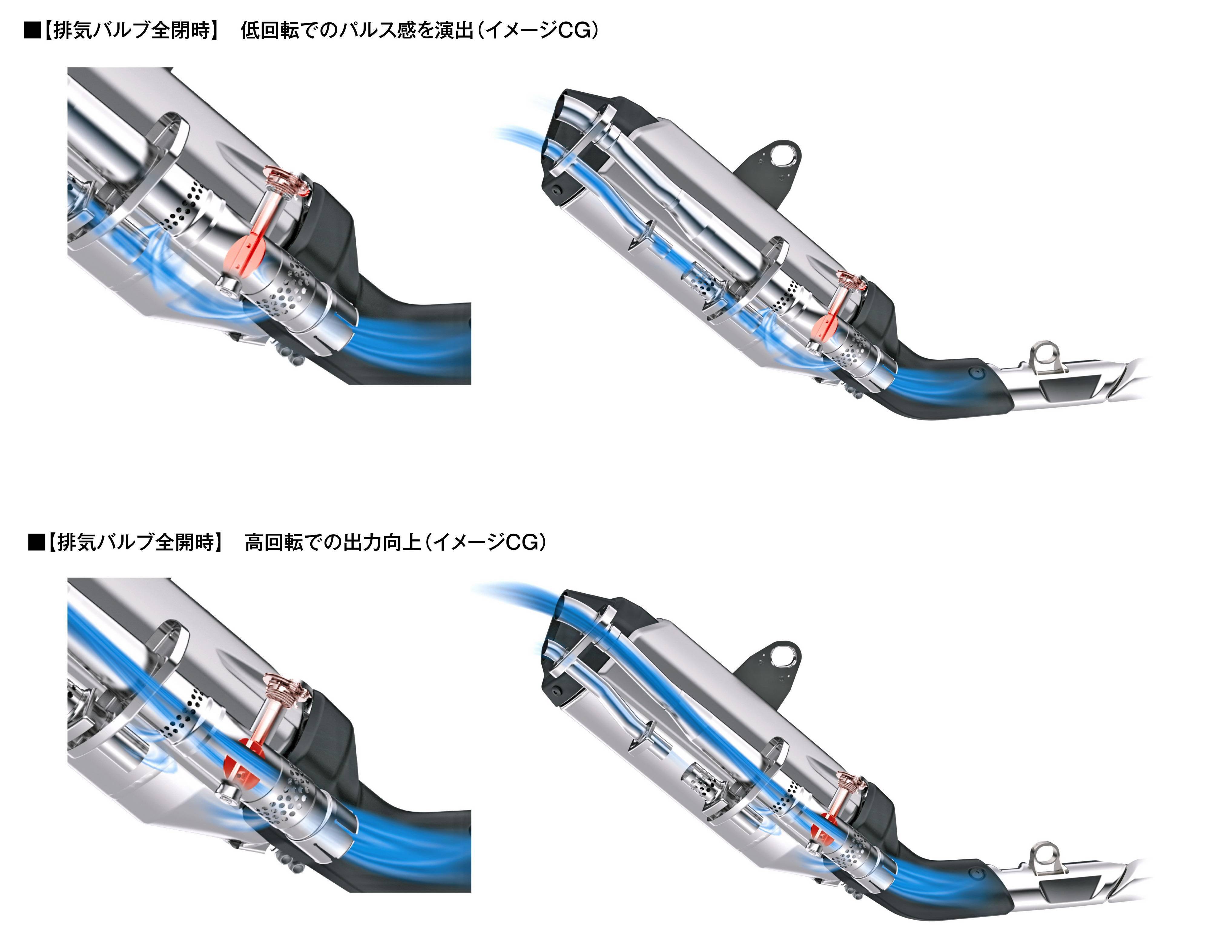 與上一代的 CRF1000L 相比,現(xiàn)行款的 CRF1100L 加裝了名為 ECV(Exhaust Control Valve,排氣控制閥門)的可變排氣閥門控制系統(tǒng)。