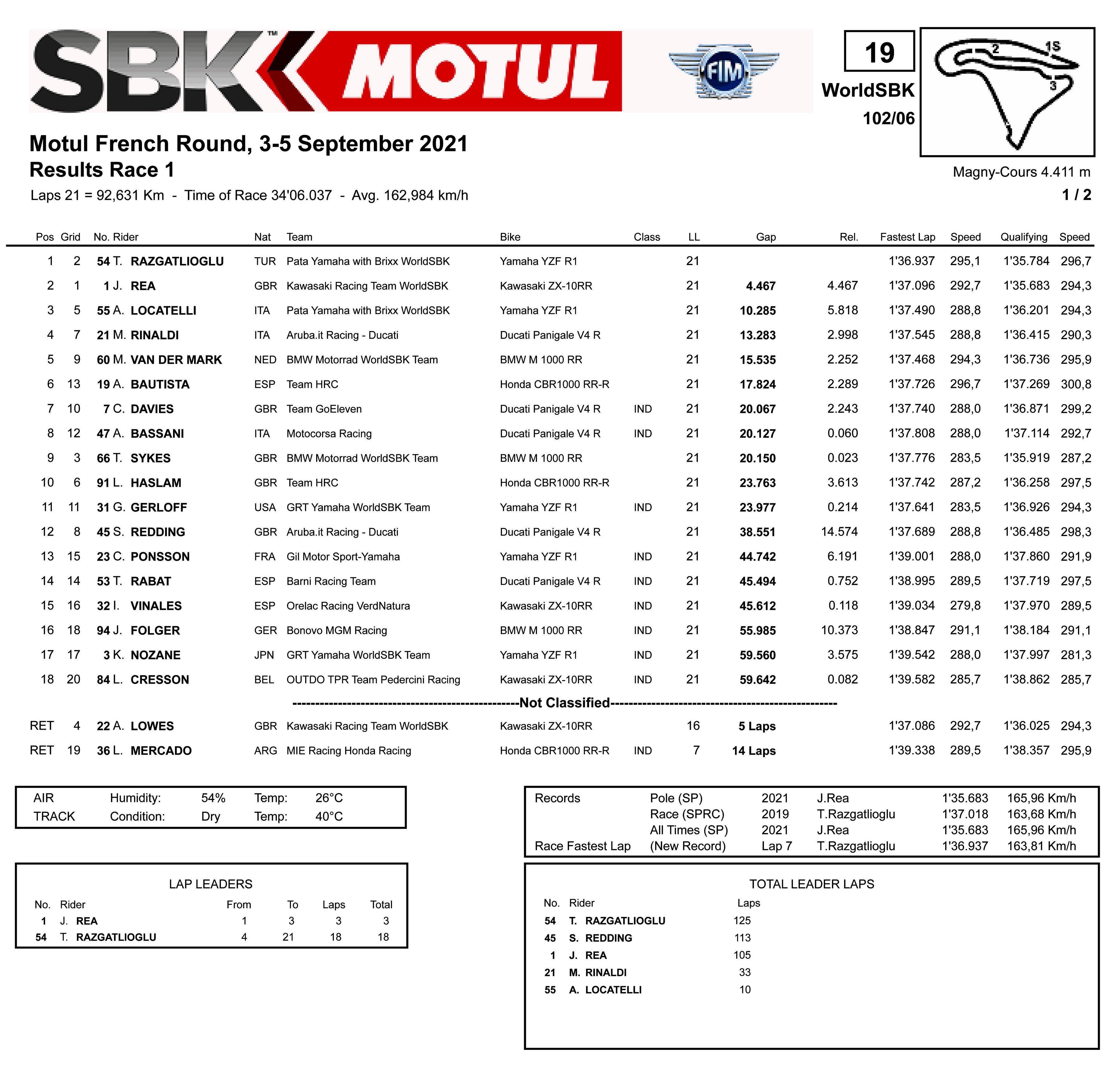 FIM WSBK 世界超級(jí)摩托車(chē)錦標(biāo)賽 2021 賽季第八站的比賽,九月 3 - 5 日在法國(guó)的曼尼庫(kù)爾(Magny-Cours)賽車(chē)場(chǎng)舉行。
