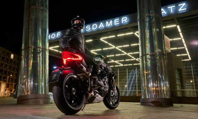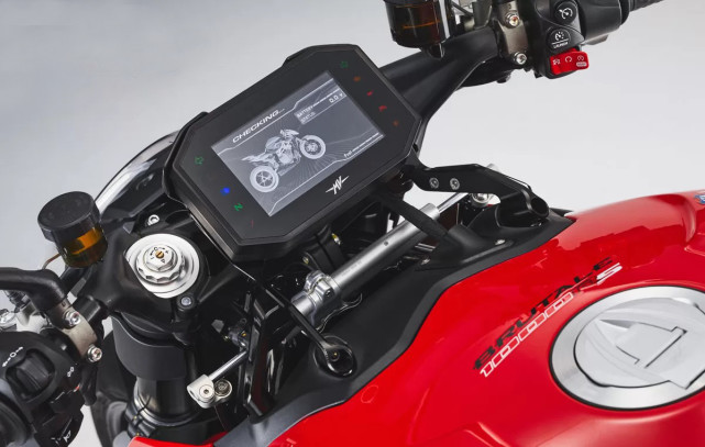 包括前提升控制 (FLC)、MK100 大陸系統(tǒng)的轉(zhuǎn)彎 ABS、轉(zhuǎn)彎牽引力控制、巡航控制以及用于手機(jī)控制各種功能的 MV My Ride 應(yīng)用程序集成。Mobisat 追蹤器、GPS 和藍(lán)牙也是標(biāo)準(zhǔn)配置,導(dǎo)航集成到儀表板中。在全彩TFT儀表中,Brutale 1000 RS更新了IMU設(shè)置,用于控制配備傾斜傳感器的彎道ABS。