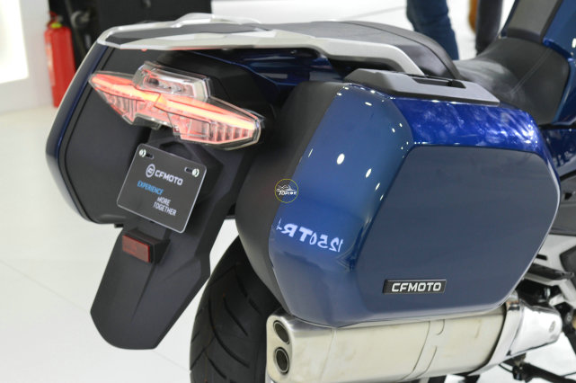 原廠標(biāo)配的43.3L容量的邊箱,可以輕松放下一頂頭盔,而邊箱與車身的保持配色一致,不會破壞整體美感。