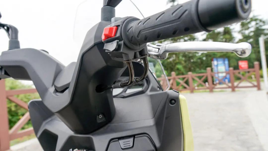 標配無鑰匙啟動系統(tǒng),手把中間蓋子打開,里面還隱藏了一個UBS接口,“順便”解決了UBS接口的防水問題。