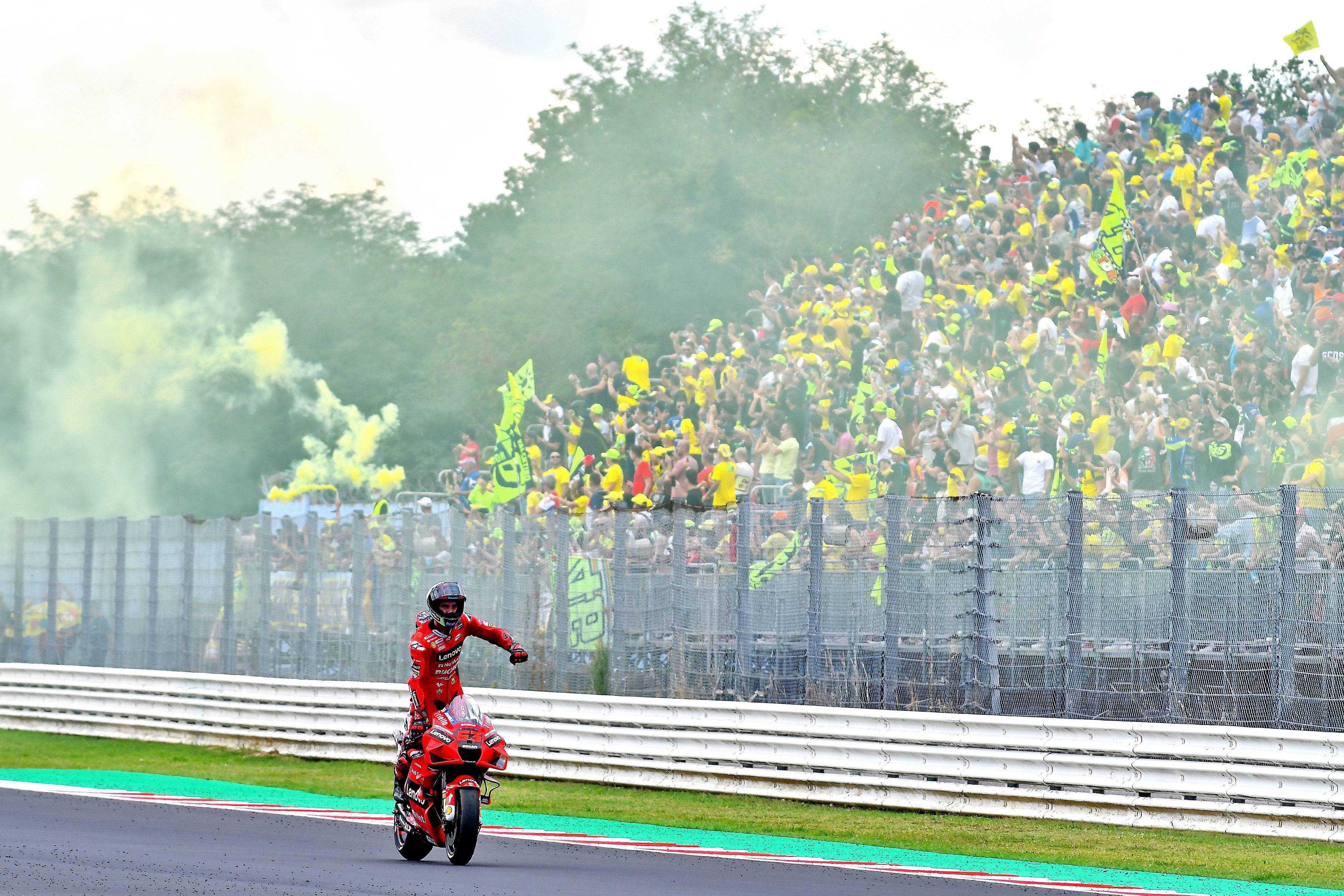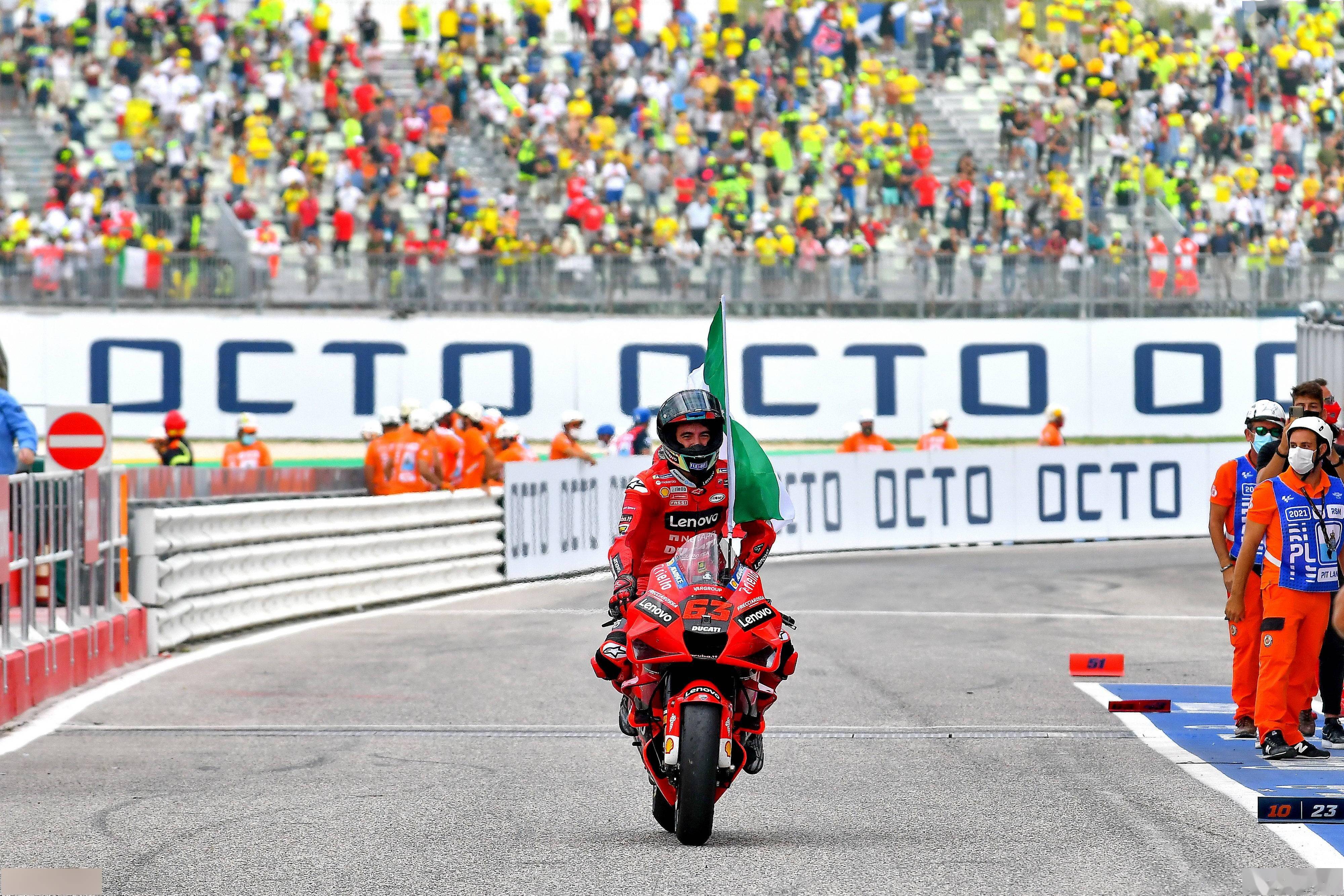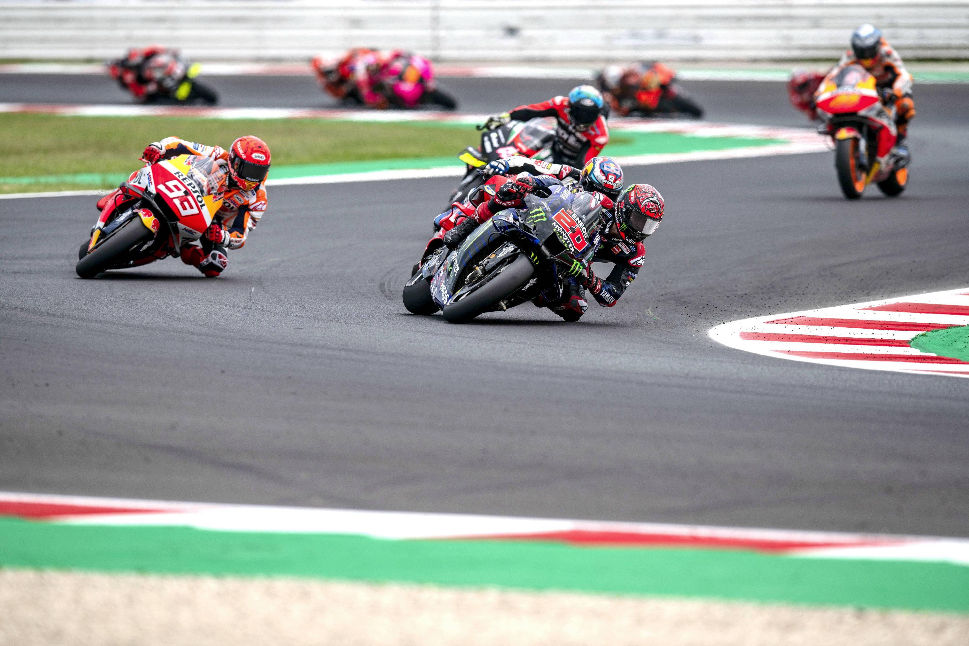 最終,巴納亞奪得了這次主場作戰(zhàn)的勝利,連續(xù)第二站拿到了冠軍。落后大約 0.3 秒,夸塔拉羅獲得了第二。在第 19 圈超越了米勒、位置升上第三的巴斯塔尼尼,也穩(wěn)住了自己的節(jié)奏,順利奪得了第三、贏得了個人在 MotoGP 級別的首次登上頒獎臺。