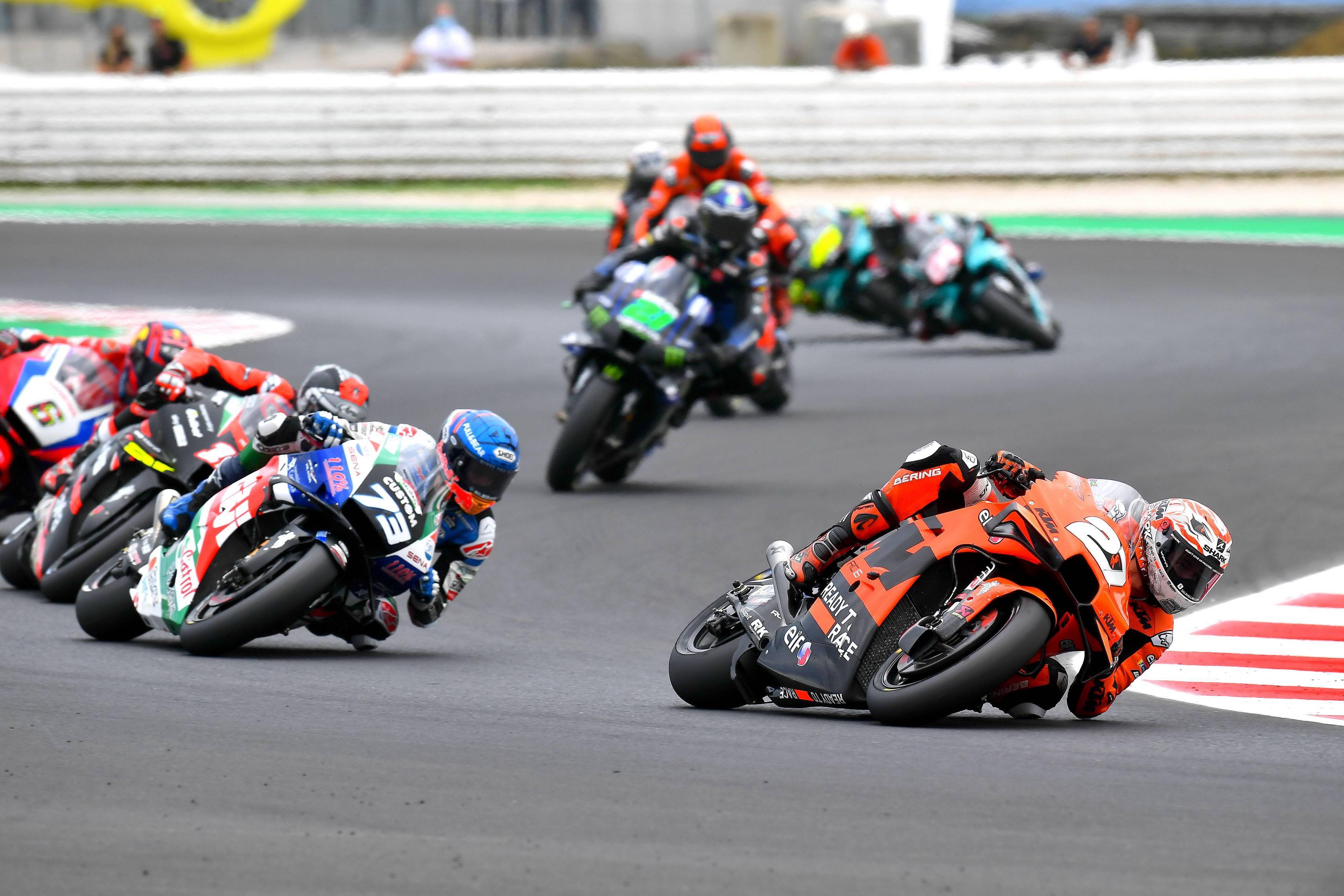 前面集團的身后,是多位工廠車隊的車手在追逐,其中夾雜著 23 號車、來自獨立車隊的巴斯塔尼尼(Enea Bastianini)。另一位來自獨立車隊的車手馬丁,在第 3 圈摔了一跤,退出了對前列位置的爭奪。