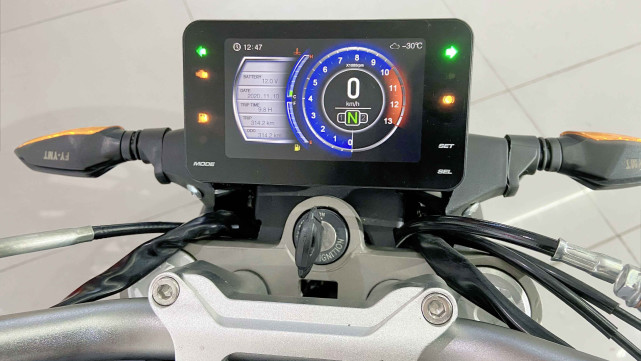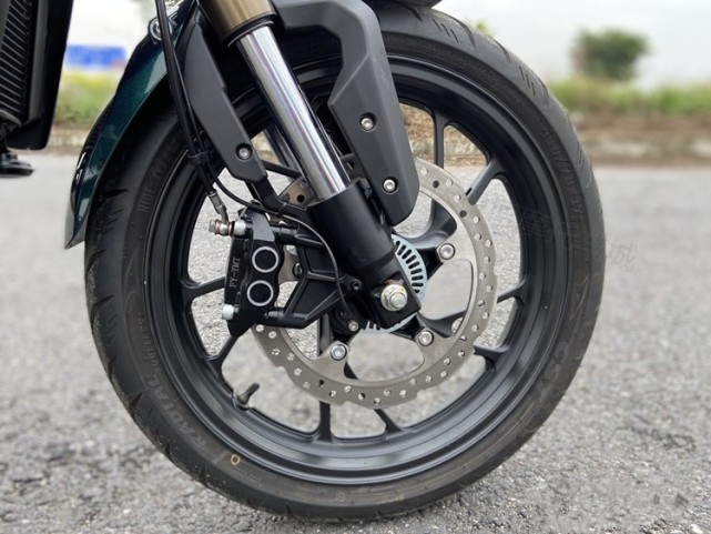 硬件方面,搭載由渝安提供的倒立式前叉,凱凌提供的對向四活塞剎車卡鉗,還有帶背光的手把按鍵,高配版還采用了正新Migra S1半熱熔的輪胎。