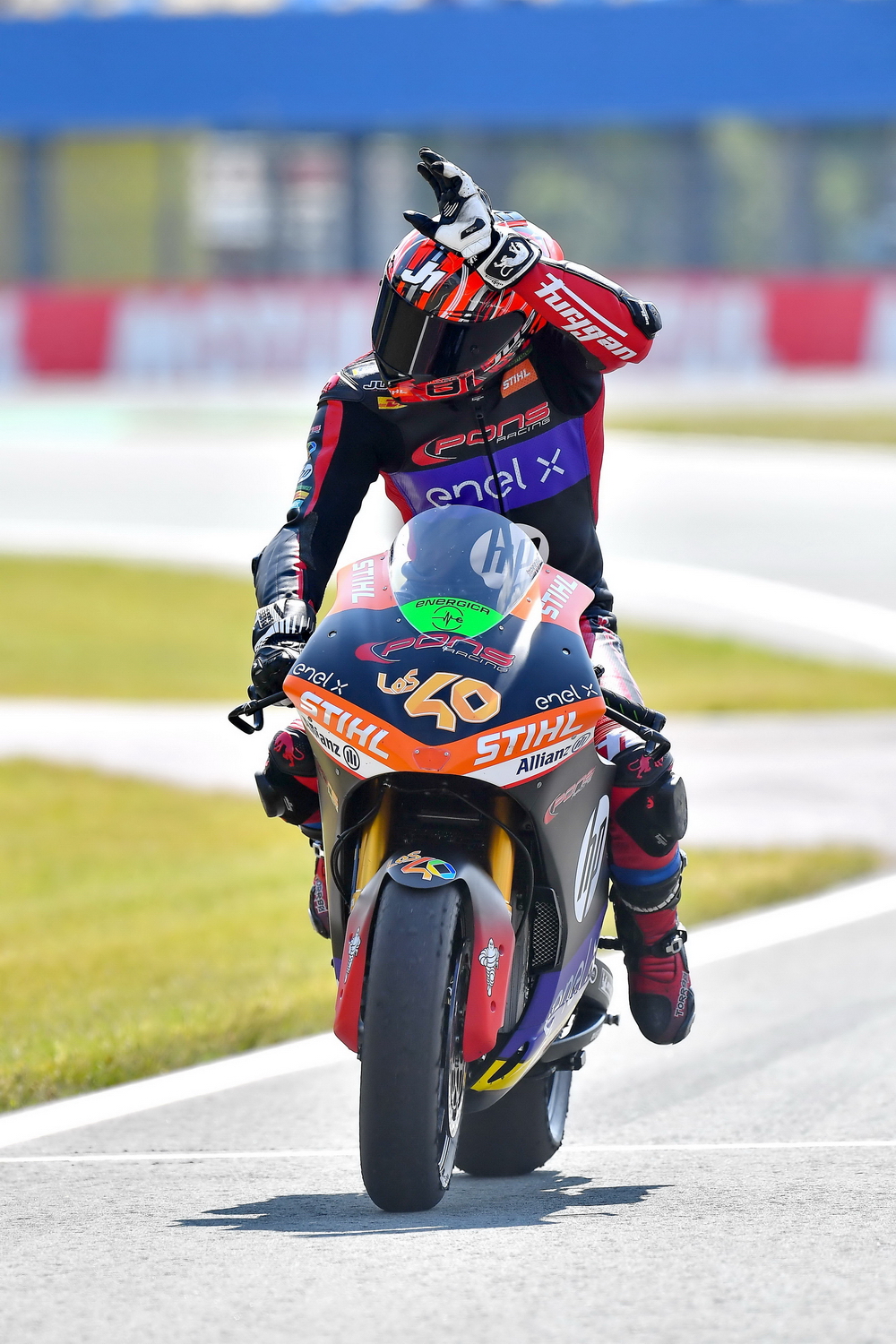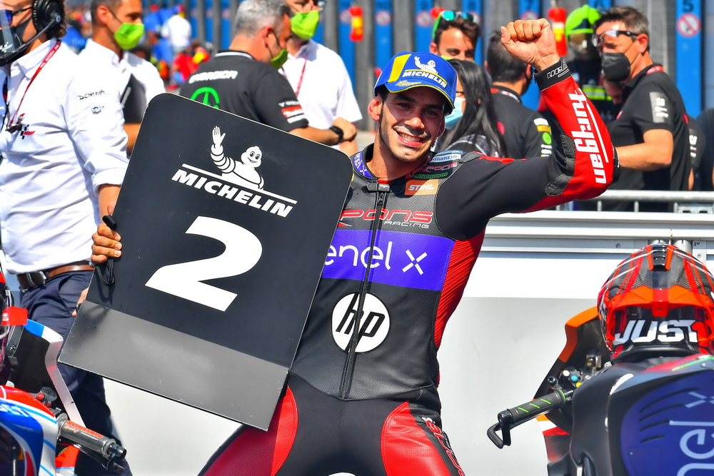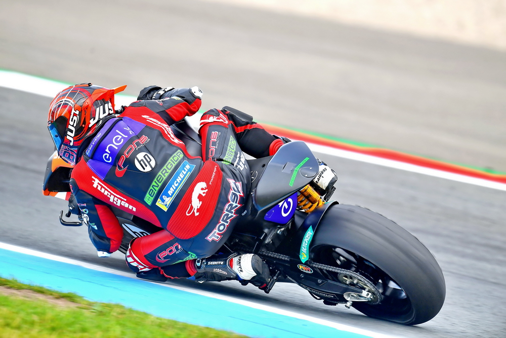 下面的圖片,2021 年度 MotoE 第四站、荷蘭艾森(Assen),拿到了第二名的托里斯(資料圖片)。