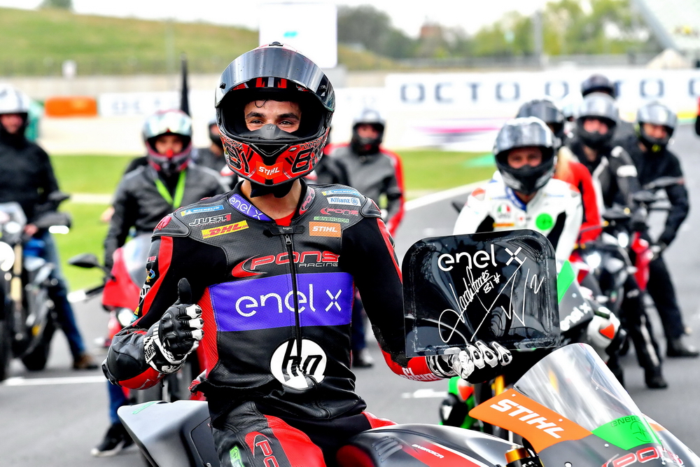 MotoE 的比賽統(tǒng)一使用由意大利 Energica 提供的賽車(chē)。西班牙車(chē)手托里斯(Jordi Torres)在奪得了第一節(jié)比賽的冠軍之后,以 97 分的成績(jī)、奪得了 MotoE 今年的總冠軍。這是他繼 2020 年首次拿到該項(xiàng)比賽的年度總冠軍以來(lái),連續(xù)第二年蟬聯(lián)勝利。