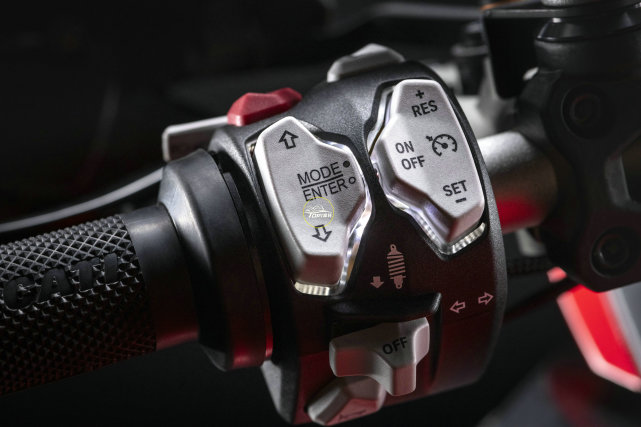 而Multistrada V2 S則增加了巡航控制、帶彎道功能的全LED大燈、5英寸的TFT全彩儀表和帶背光車把按鍵。