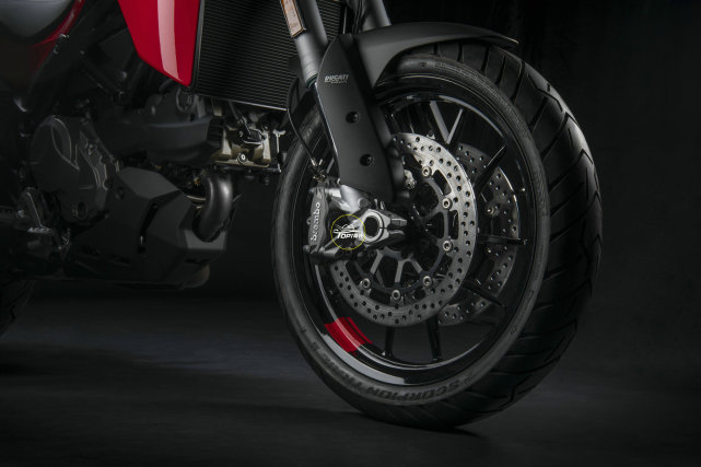 因?yàn)榘l(fā)動(dòng)機(jī)的更新以及源自Multistrada V4的新后視鏡和鑄造車輪,這些改變減輕4.98Kg的重量。Multistrada V2的整備重量為221kg,S版本為225kg。鋼絲輻條輪作為選裝件提供,杜卡迪也表示,新的輻條輪要比之前950上提供的車輪更輕。