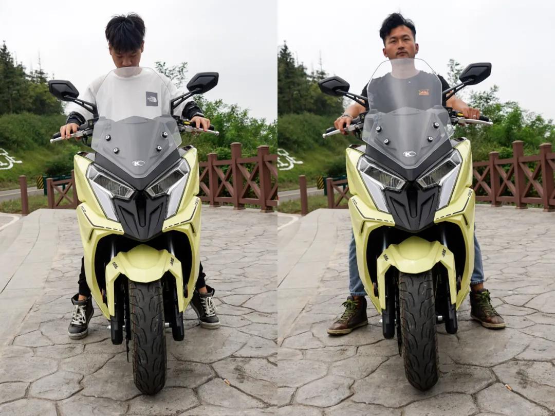 這臺車官方宣稱座高為785mm,實際騎乘時,號稱身高不到一米八實際168cm的我可以做到雙腳前腳掌著地,低重心的設(shè)計讓我在停車時也基本沒有什么壓力,坐在車上前后挪車也不是大問題;身高178cm的國瑞同學(xué)可以做到雙腳全腳掌著地,甚至膝蓋還能有些彎曲。