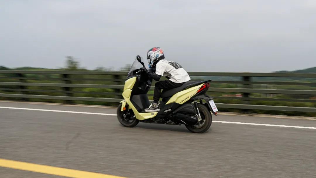 測試環(huán)境平路無風(fēng),氣溫30度,測試者體重50kg,經(jīng)多次測試后零百最好成績?yōu)?7.5s,對比我們先前測試過的同為水冷四氣門的金城草蜢150 17.2s的成績來說,Racing X150是稍慢一些的,但是它17.5s的成績是比同級別的“外掛”選手大陽V銳150混動版的17.7s的成績是要快一些的,我們綜合來看,排除掉測試環(huán)境不同帶來的影響,其實大家的成績都差不多,那么也說明光陽Racing X150的加速水平是在國產(chǎn)150級踏板車的第一梯隊的。