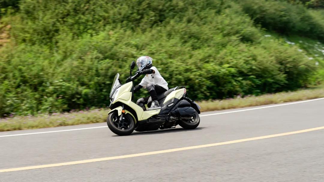 由于這輛車采用了底置油箱的設(shè)計,需要保證一定量的油箱容積的同時,還需要保證一定的離地間隙,所以這臺車整體腳踏板位置是有些偏高的,再加上為了照顧國人平均身高,這臺車座高只做到了785mm,我們實際騎乘時會發(fā)現(xiàn),上半身是保持較為直立狀態(tài),比較舒服,但是下半身就像“半蹲”姿勢,特別是個子比較高的騎手,長時間騎行會有不適感,好在車把夠高,不會存在轉(zhuǎn)向打膝蓋的情況;