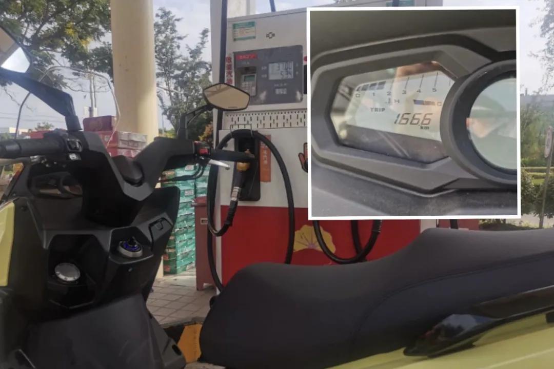 本次評測共行駛166.6公里,包含20%城市道路、30%非鋪裝以及50%山路,最后加滿油至與上次油平面一致,加入5.34升,最后換算出油耗為3.2L/100km,與官方宣布的2.45L/100km的經(jīng)濟(jì)油耗有些差距,因為我們評測開車是比較暴力的,頻繁的啟動與熄火以及霍霍泥巴也會造成油耗居高不下,所以我們測出的油耗僅供參考,實際日常騎行時的油耗應(yīng)該會落在2.6-3.0L/100km,這個油耗成績在國產(chǎn)150級踏板中來說還算不錯,按照2.8L/100km計算的話,原廠配備的6.8L的油箱也可以提供將近250km的續(xù)航。