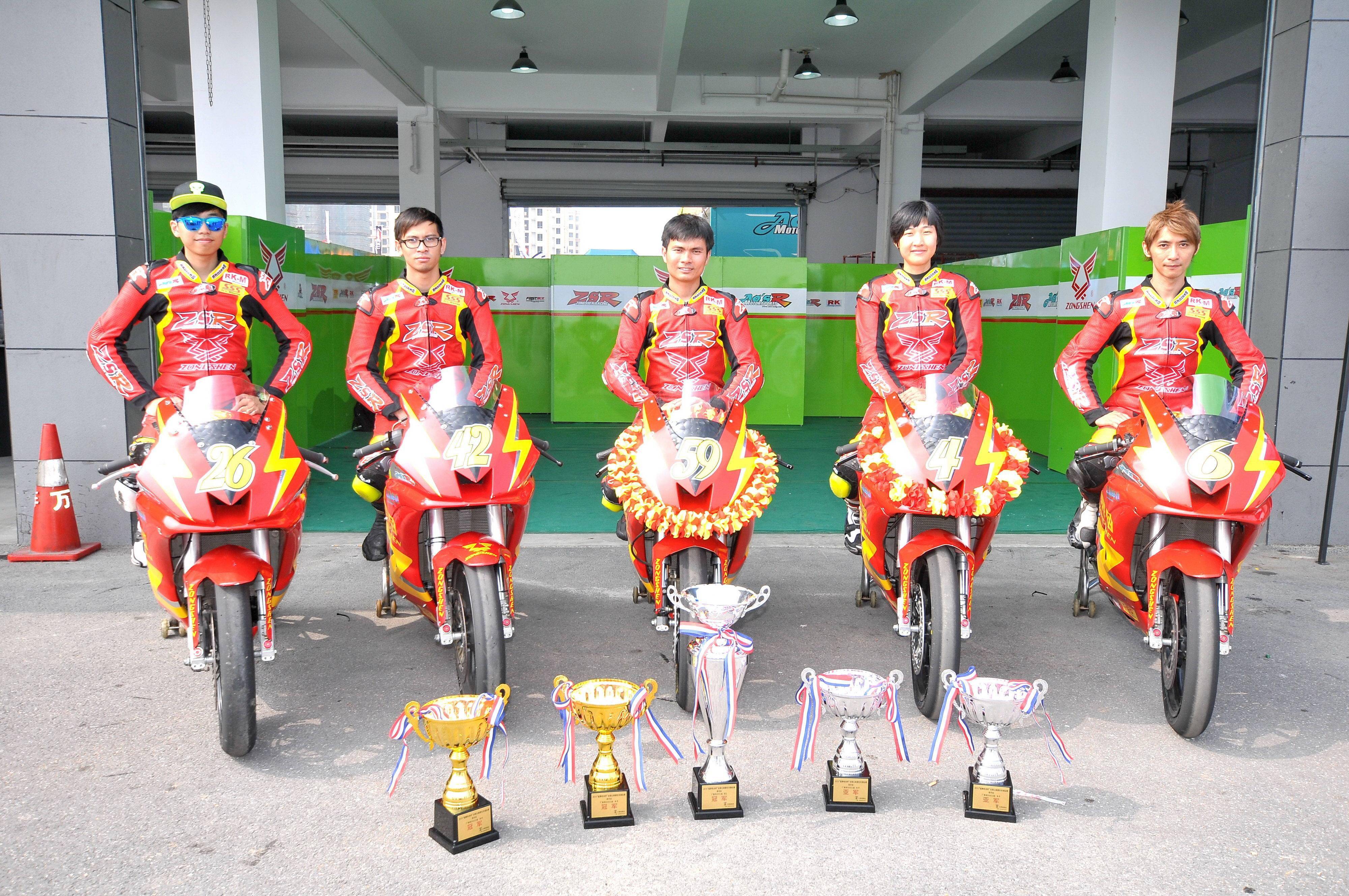 參與廠商杯 250 cc 組的制造商,主要是來(lái)自重慶的兩家企業(yè):宗申集團(tuán)和渝安新感覺(jué)。兩家企業(yè)在賽場(chǎng)上的競(jìng)爭(zhēng)是非常激烈的,特別是在 2015 年,年度前三名的積分最大差距(冠軍與季軍)只有 4 分 —— 全年五站的比賽下來(lái),劉君眉(宗申)以 170 分奪得了冠軍,張海龍(渝安新感覺(jué))以 167 分獲得了亞軍,何智鋒以 166 分拿到季軍。