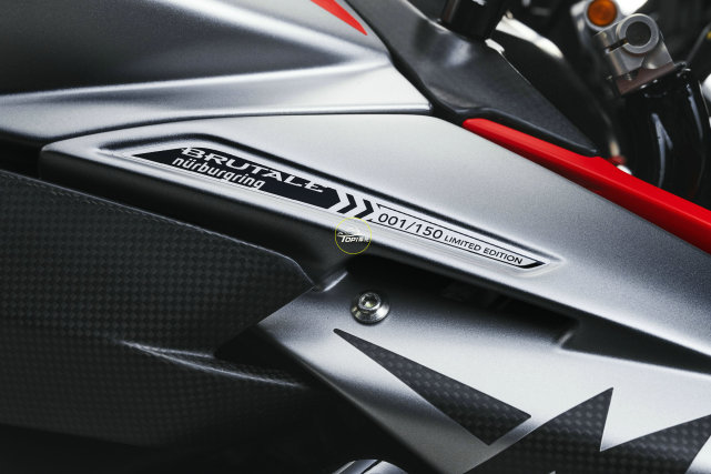 Nürburgring(紐博格林)版基于最新的Brutale 1000 RR打造,限量版車型具有與2021款車型相同的998cc直列四缸發(fā)動機,但限量版加入了從WSBK中獲得的鈦合金4合2合1的Arrow排氣系統(tǒng),受益于更長的主歧管,從而增加了扭矩。另外配備專用的ECU,將紐博格林版的功率從基礎(chǔ)版的208匹馬力提升到215匹馬力。