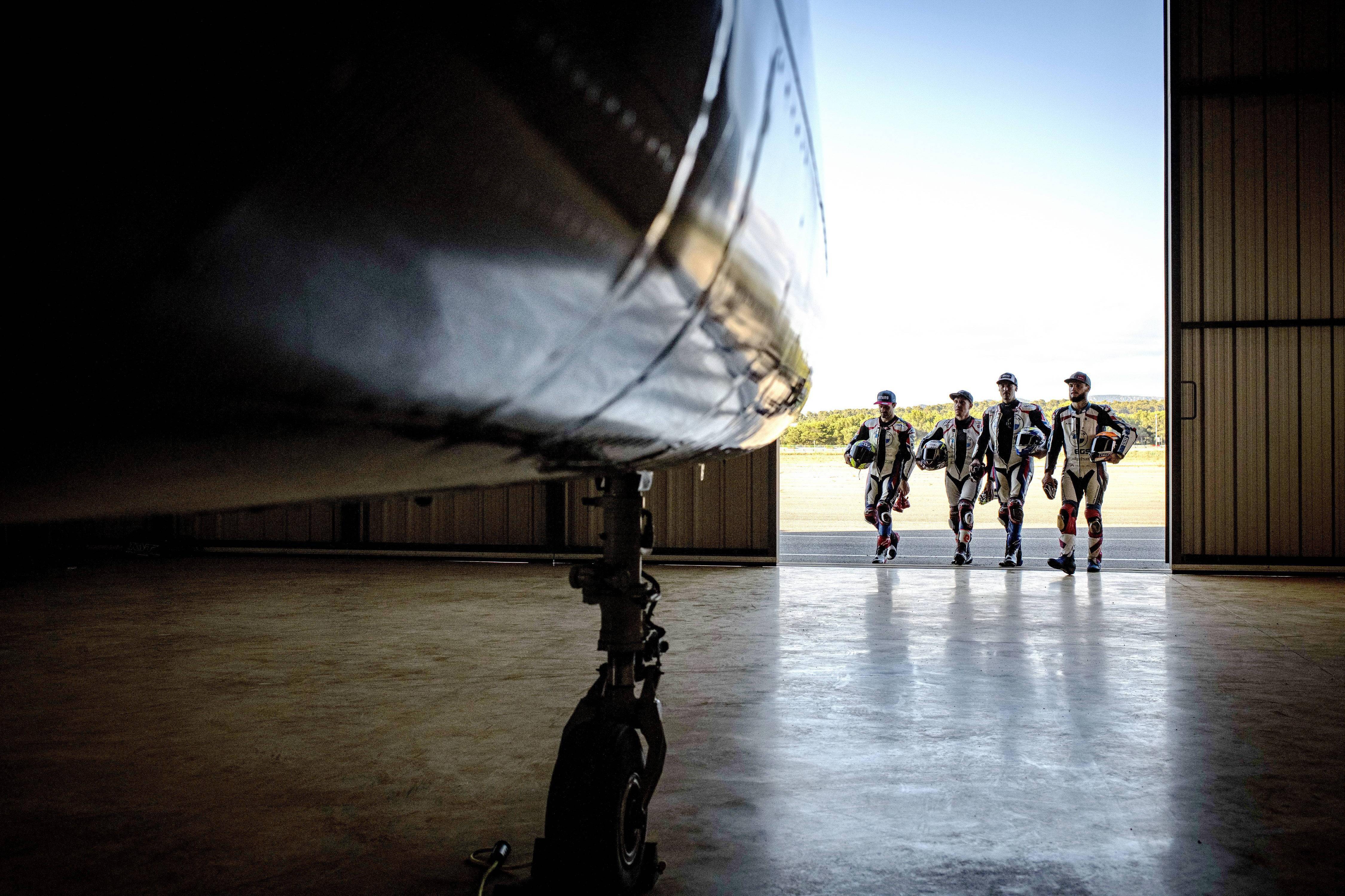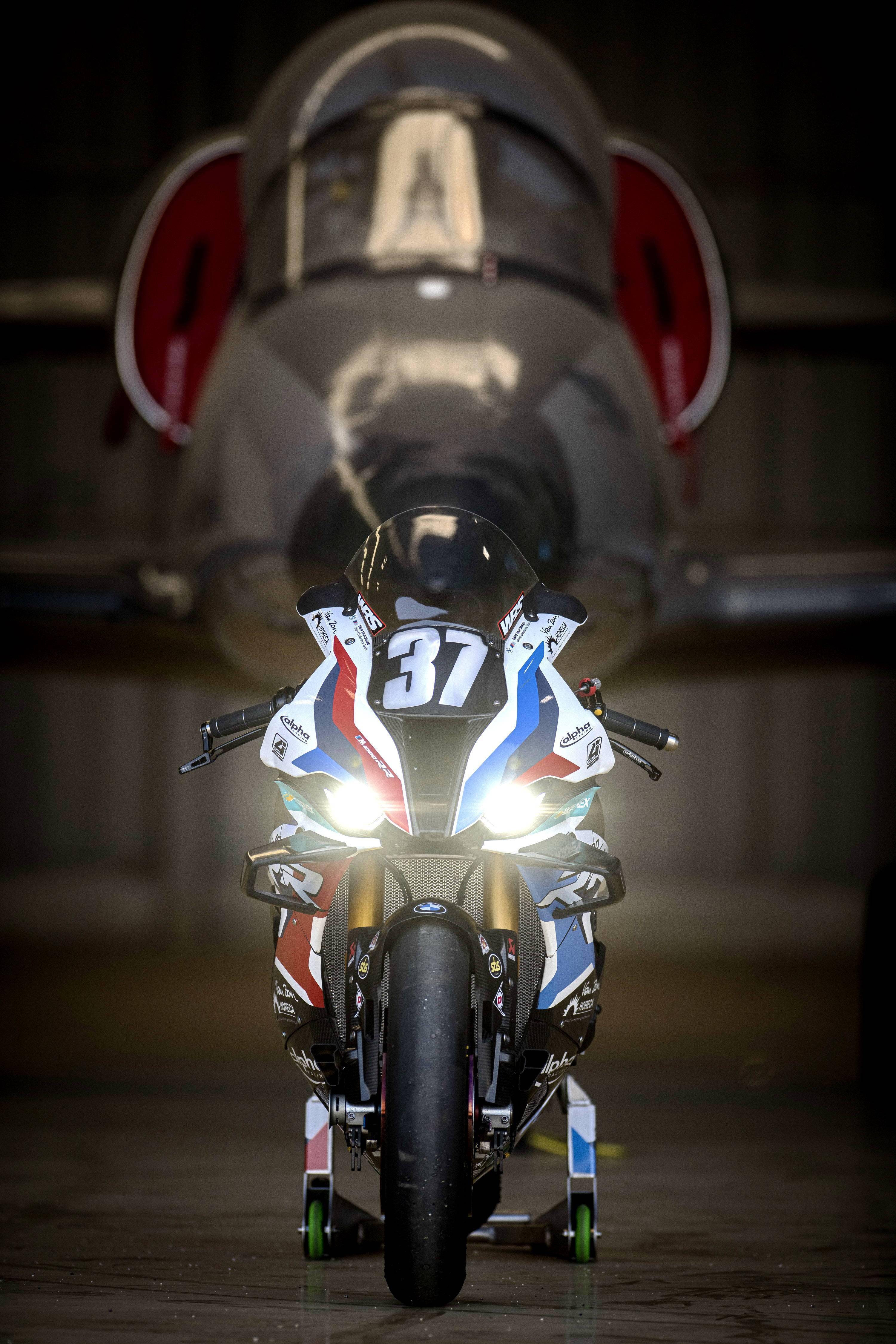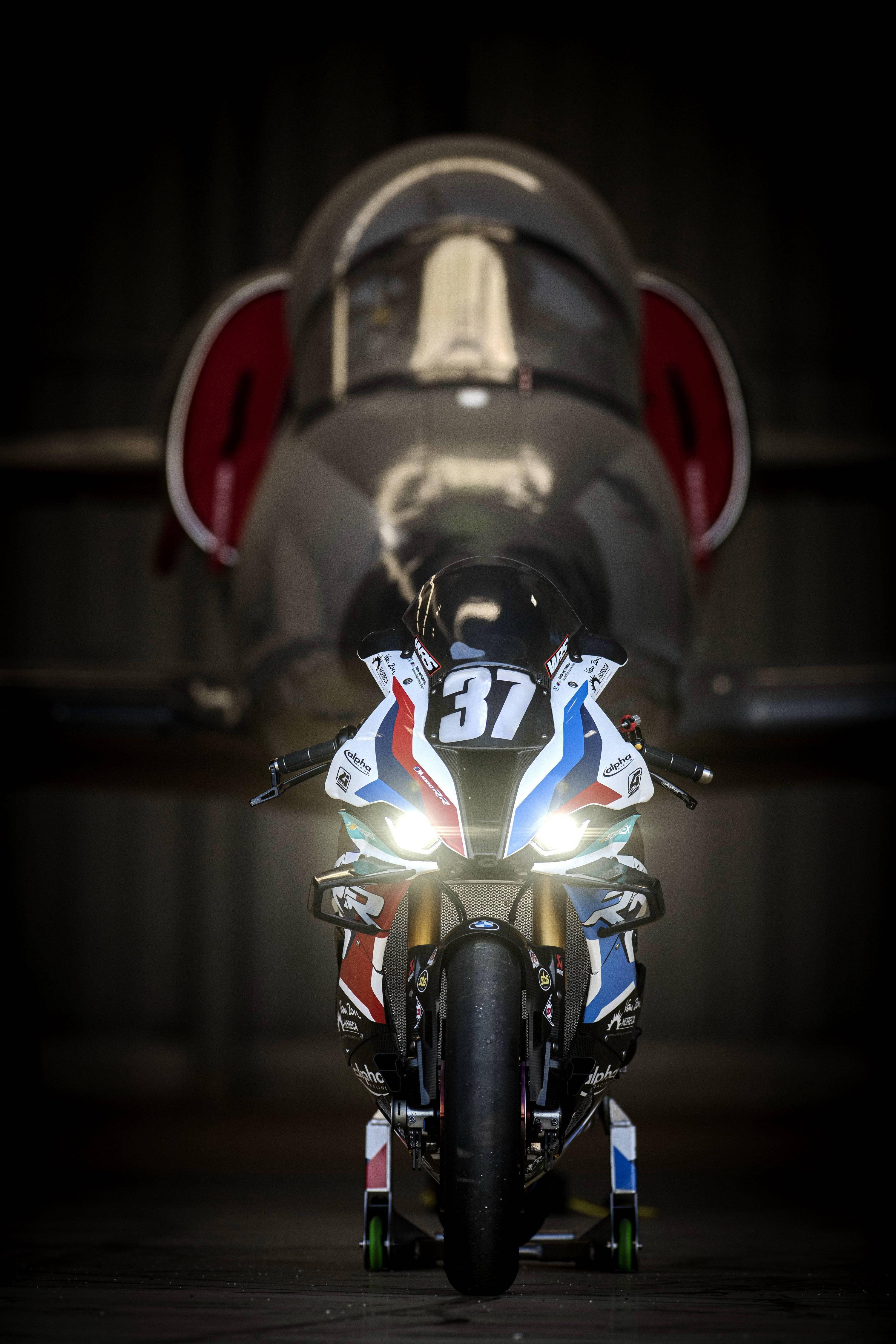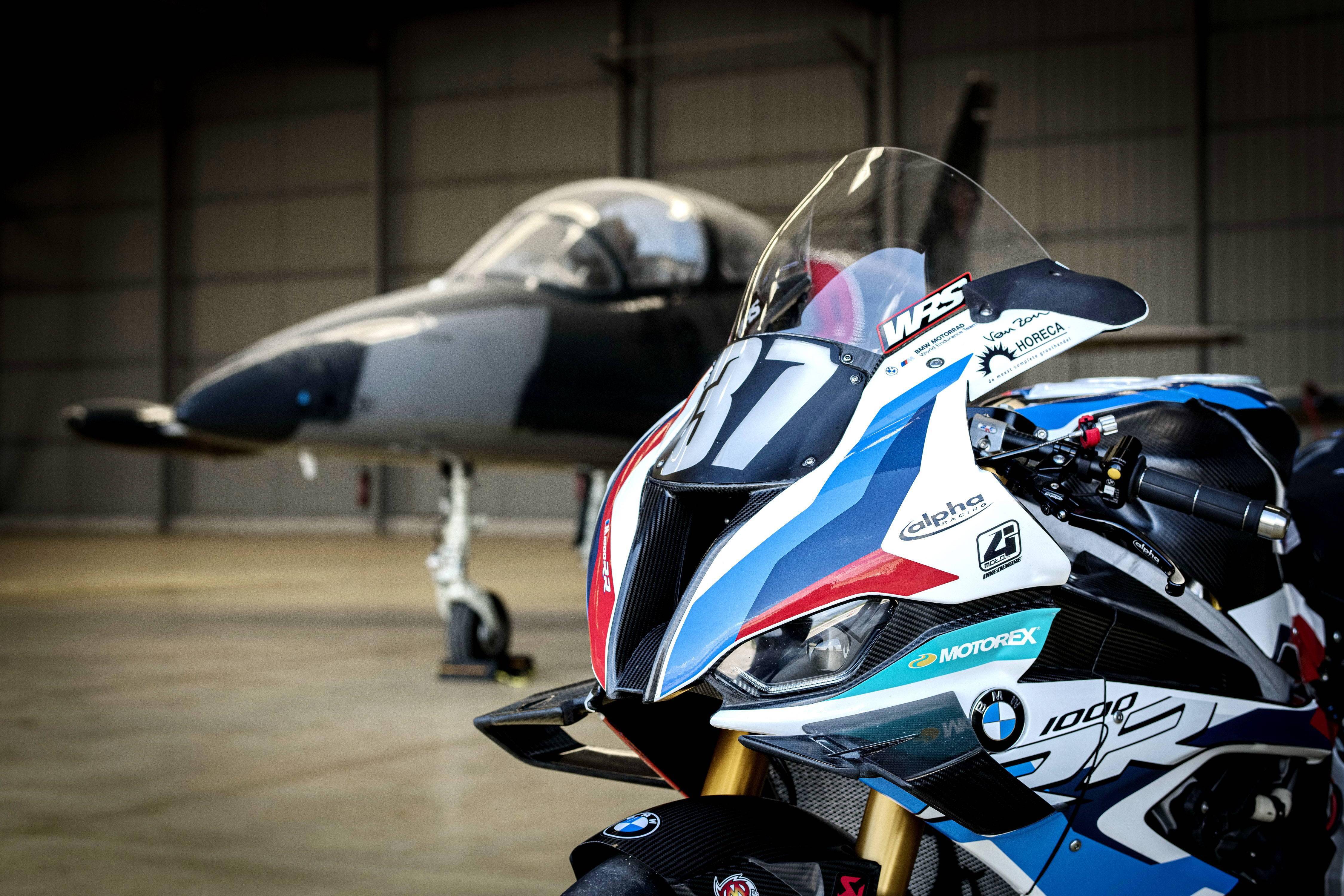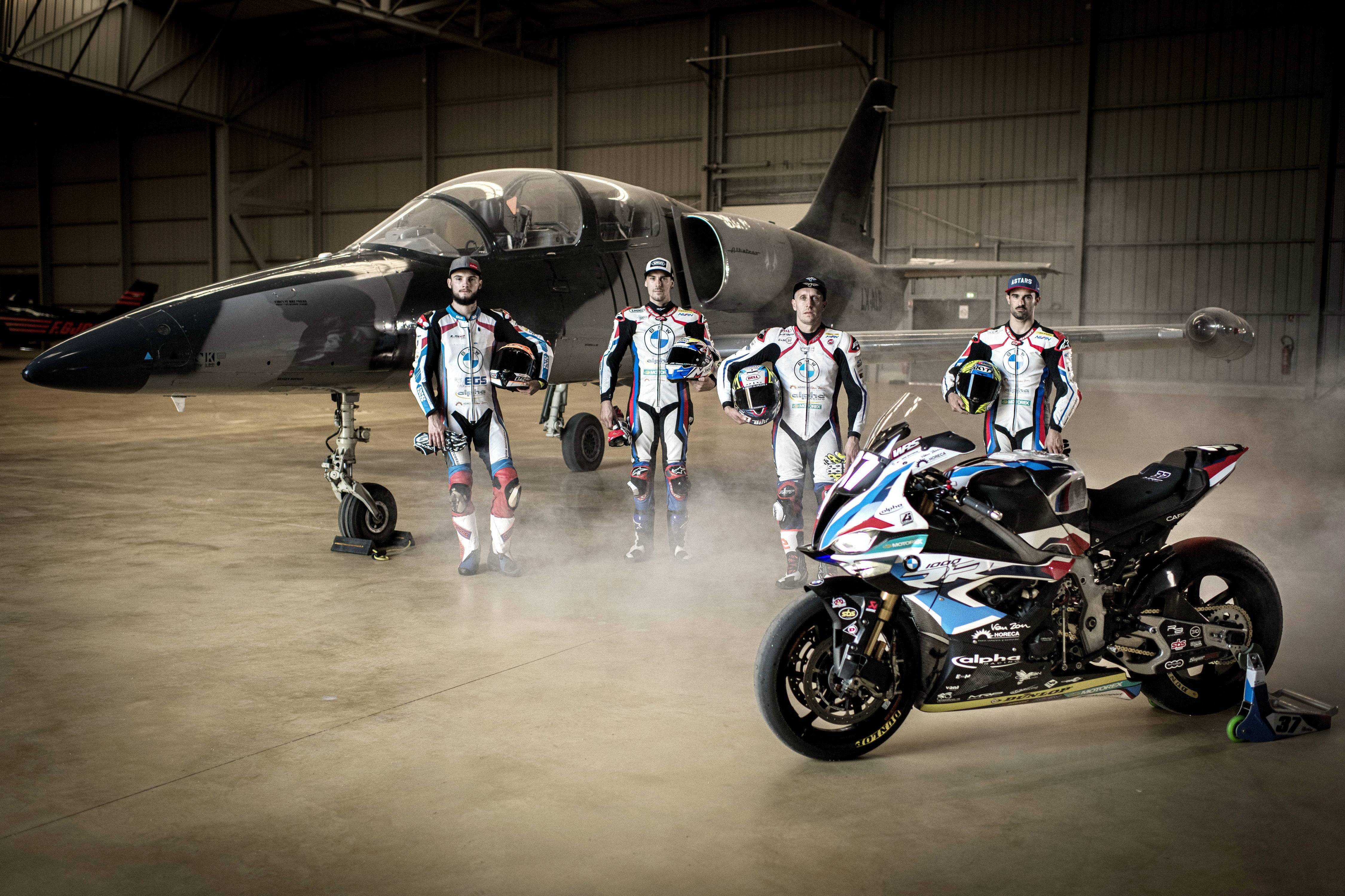 寶馬 M1000RR EWC 工廠賽車與噴氣式飛機(jī)的合照