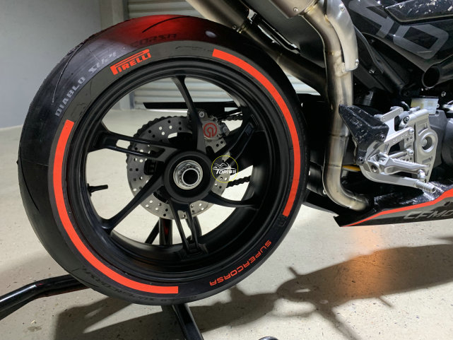 倍耐力DIABLO SUPERCORSA輪胎,鍛造的可調(diào)節(jié)腳踏,單邊后搖臂,后Brembo雙活塞卡鉗,雙出的SC高位排氣盡顯賽車風(fēng)范。