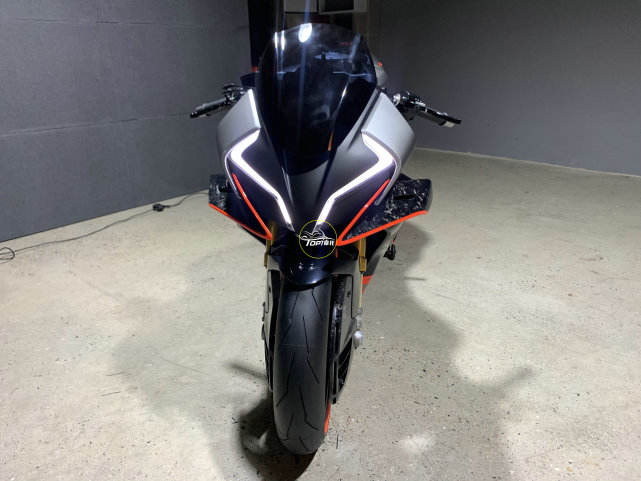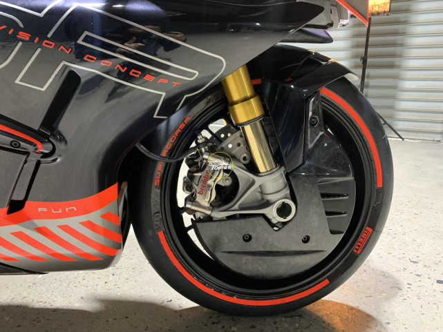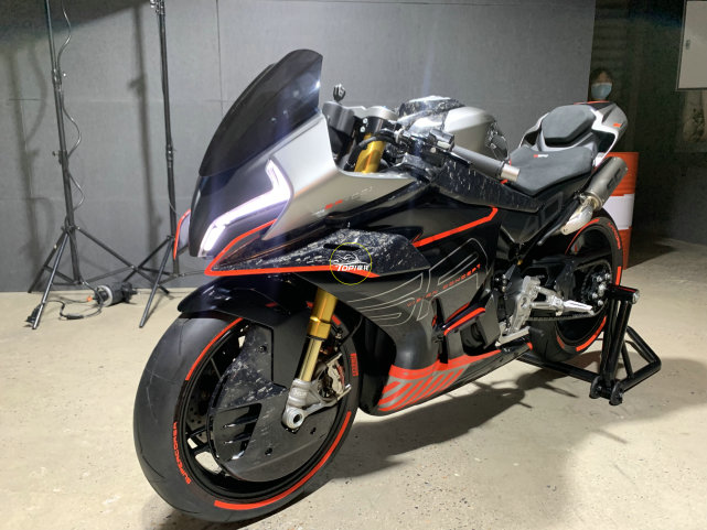硬件方面的規(guī)格堪比賽車,配備Ohlins全可調(diào)的倒立式前叉,Brembo的直推上泵、離合器拉桿,大尺寸雙浮動(dòng)盤,搭配Brembo的徑向四活塞剎車卡鉗,還有專門設(shè)計(jì)的卡鉗散熱導(dǎo)流罩。