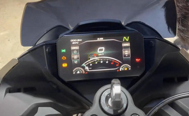 全彩的液晶儀表自然不會(huì)缺席,通過(guò)點(diǎn)亮的屏幕好像并沒有看到和電控相關(guān)的信息,不過(guò)這個(gè)儀表的布局要比250SR成熟很多,全新的界面令人耳目一新。