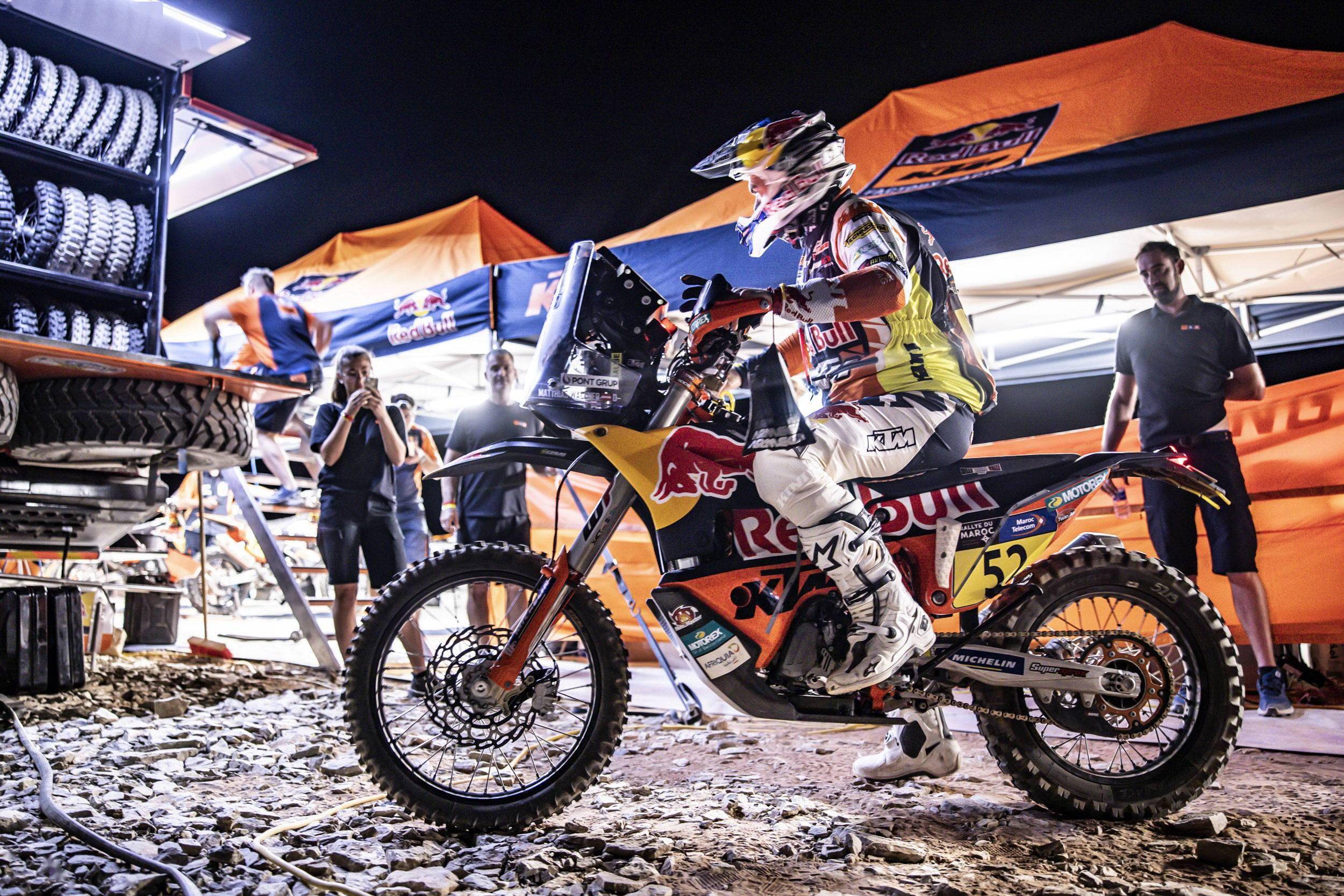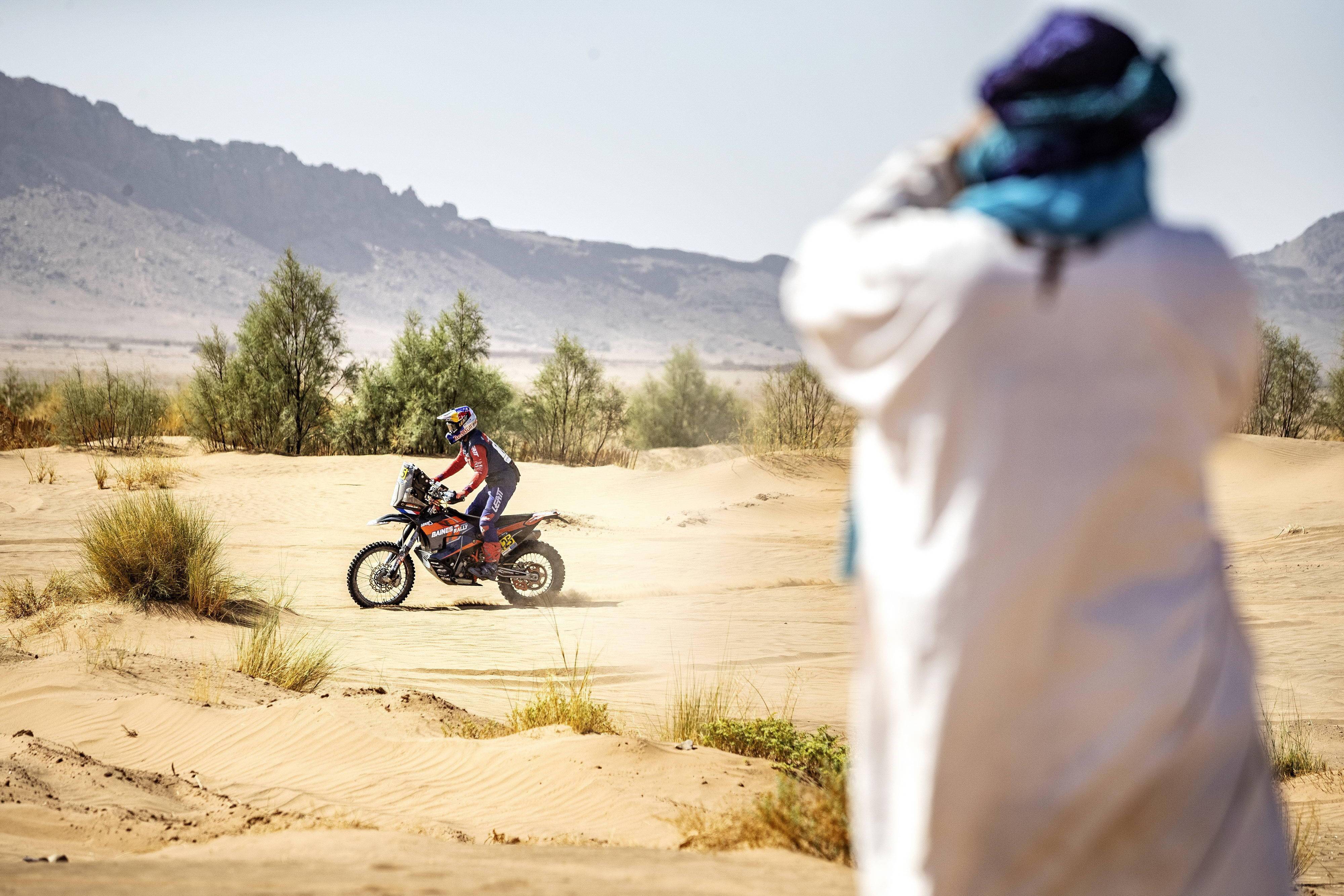 后面,駕駛 52 號車、KTM 工廠車隊的奧地利車手沃克納(Matthias Walkner)落后不到 2 分鐘,拿到了第二名。GasGas 工廠車隊的澳大利亞車手桑達斯(Daniel Sanders)落后頭車超過 5 分鐘,獲得了第三名。