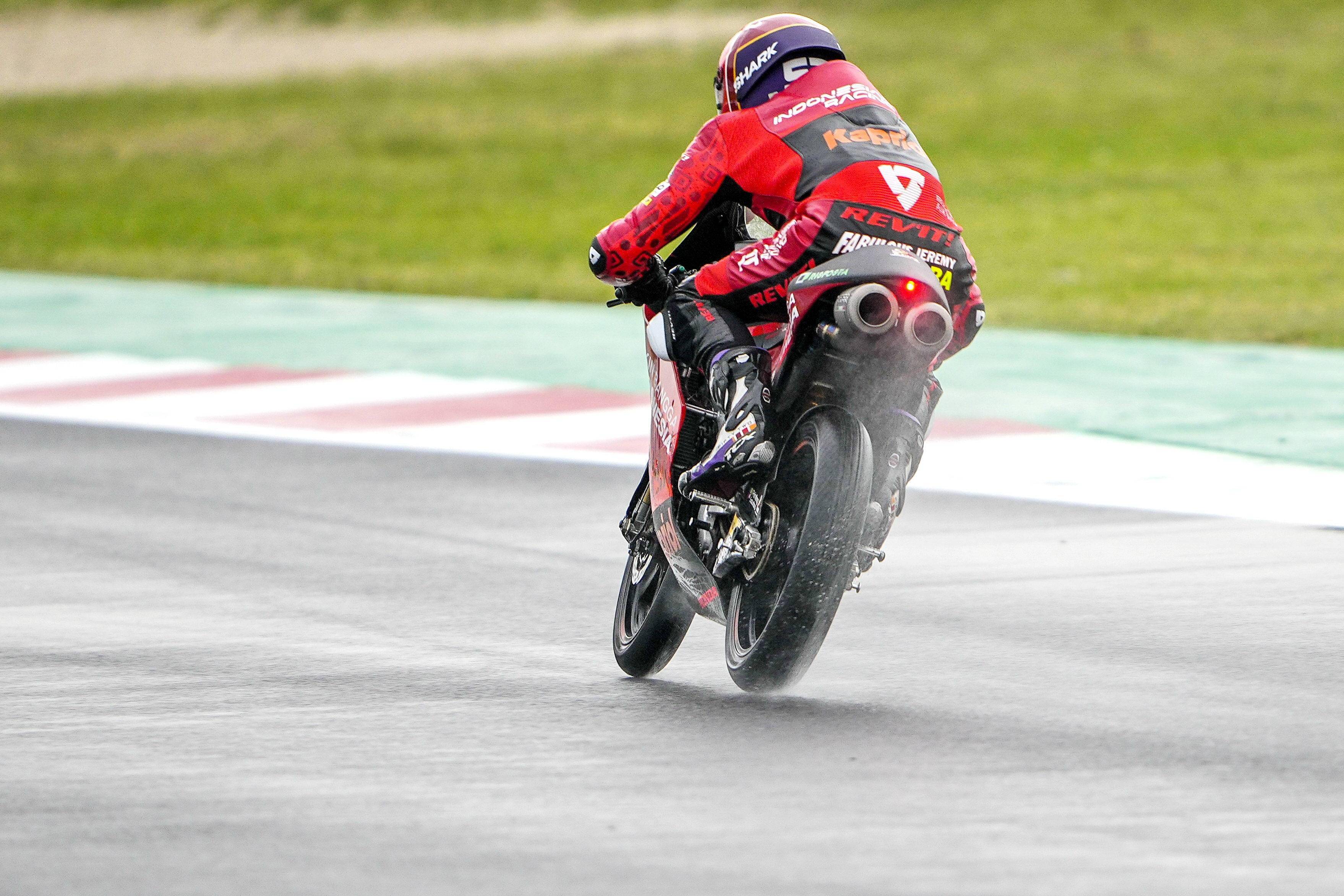 到了 Q1,同樣是濕地路面,室外和賽道路面氣溫是攝氏 16 度,拼命加速的阿科巴,在第 5 圈跑出了更快的 1 分 52.084 秒,但在隨后的第 6 圈、T15 摔車,無法把時間進一步提高、進軍 Q2。