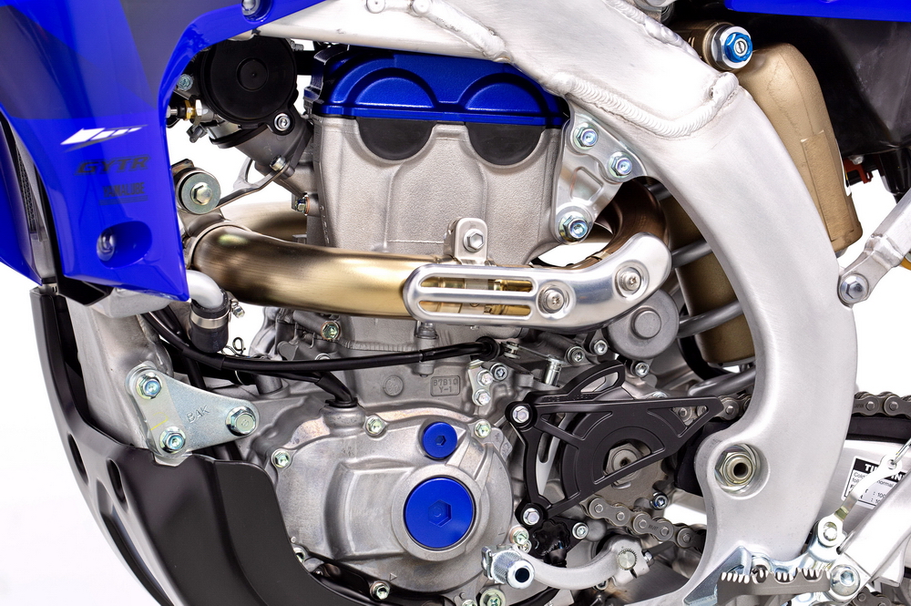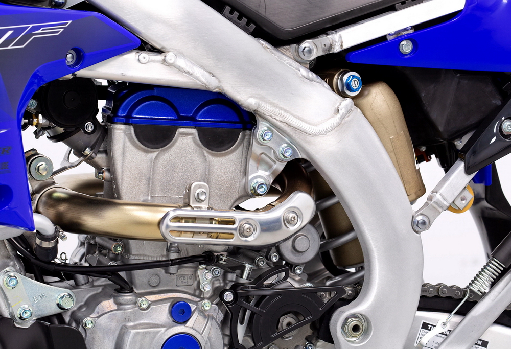與 2021 版本相比,新的 2022' WR250F 的動力單元,其變化主要在內(nèi)部:新設(shè)計的配氣系統(tǒng)(氣缸頭)內(nèi)部結(jié)構(gòu);提高了中、低轉(zhuǎn)速之下動力輸出的新排氣閥凸輪軸;位于發(fā)動機前方的進氣口,采用了與新一代 YZ250F 同步的新設(shè)計,該設(shè)計有著更高的進氣流量,從而讓發(fā)動機在整個轉(zhuǎn)速范圍內(nèi)、都能夠提高燃燒效率和峰值功率;ECU 數(shù)據(jù)包經(jīng)過了優(yōu)化;降低震動的、新設(shè)計的平衡軸;讓換檔變得更平穩(wěn)、更容易的,新的換檔凸輪等。