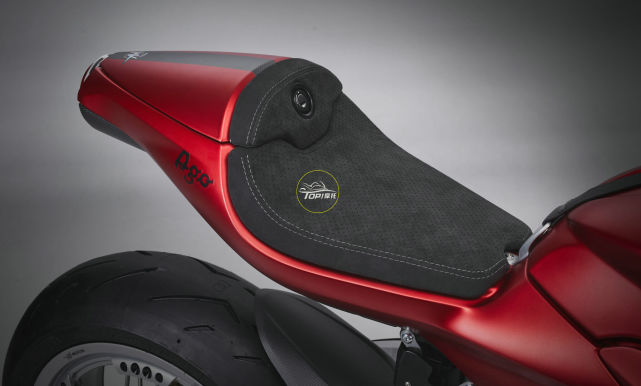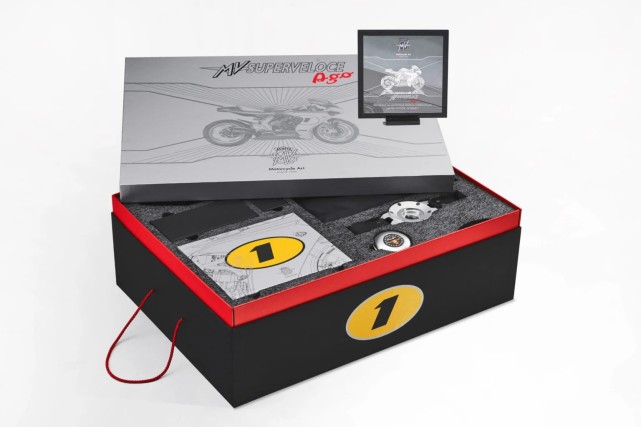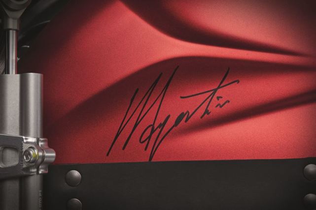 特殊的套件當中還有一對標志性的紅色手柄,就像Agostini使用的一樣,以及配有Alcantara 襯墊的碳纖維座椅整流罩,還包括獨家摩托車罩以及限量系列真實性的證書。