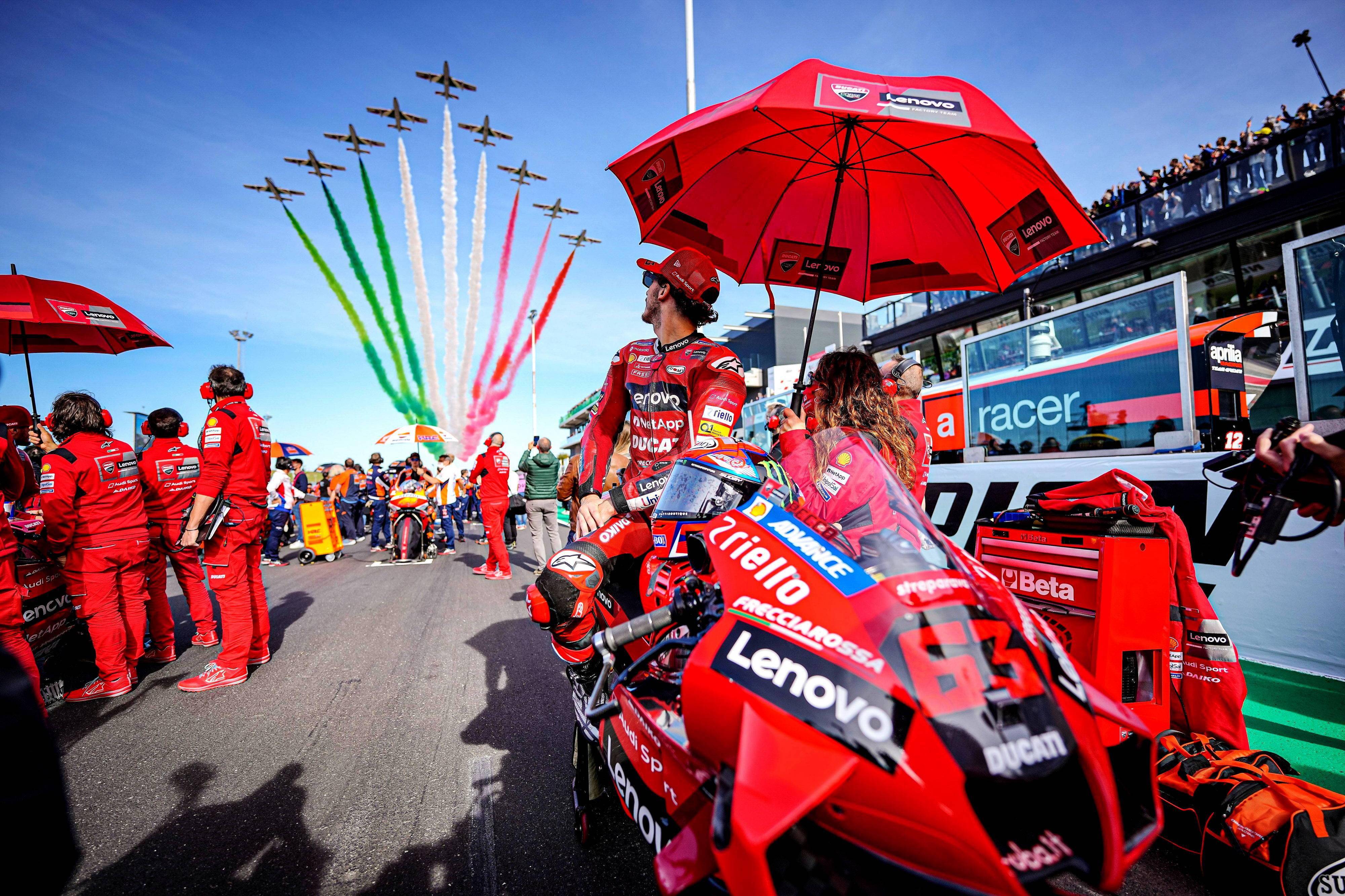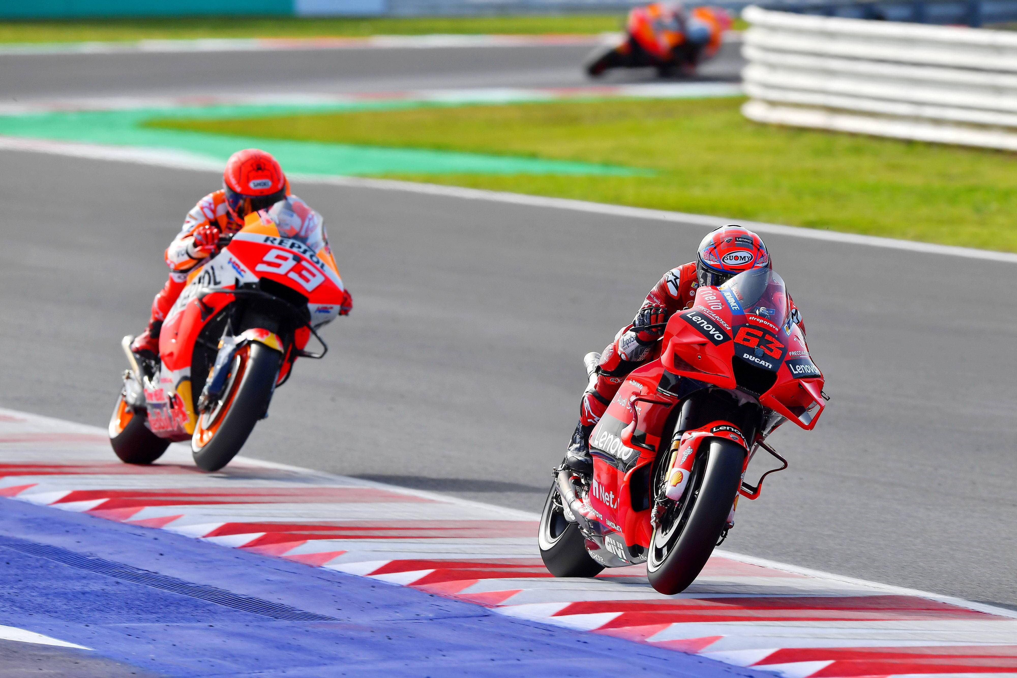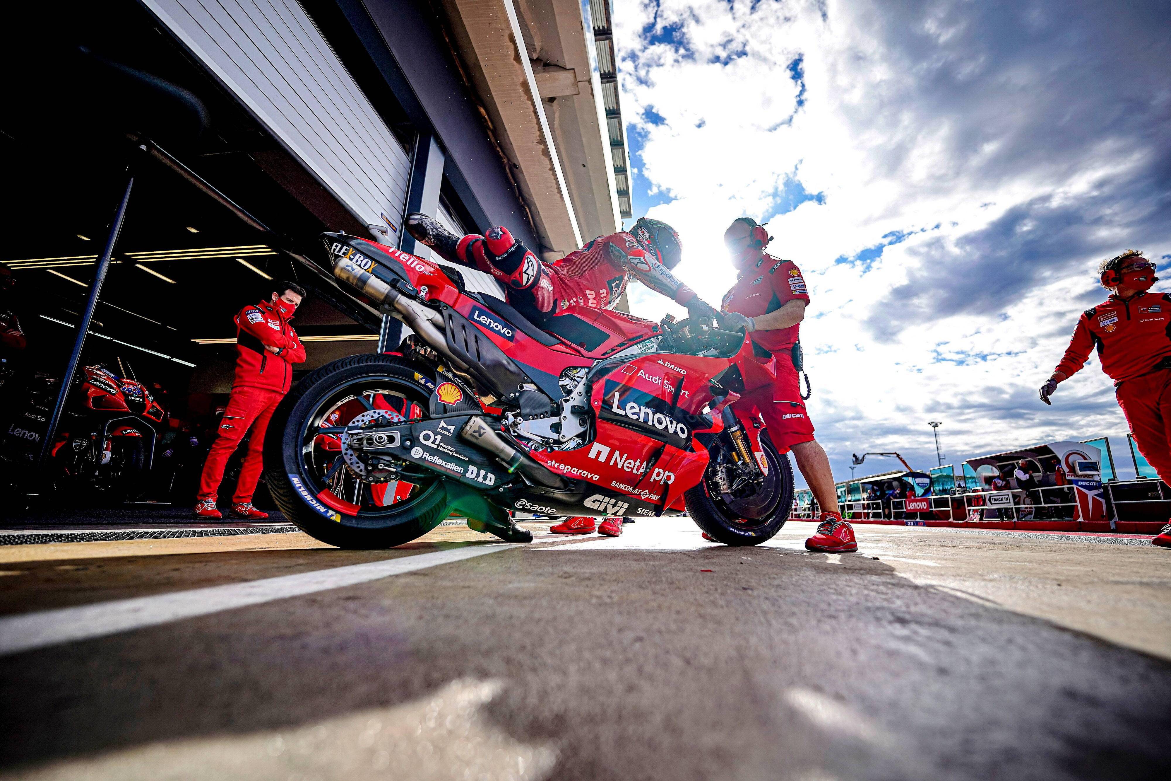 MotoGP 級別,賽前的 Q2 排位,杜卡迪兵團(tuán)包攬了前三:最近幾站的比賽、狀態(tài)大勇的巴納亞(Francesco Bagnaia)以 1 分 33.045 秒奪得了排頭位出賽,這是他在 2021 賽季的第五次排頭位,同時也是他連續(xù)的第四場比賽、從第一位起步。