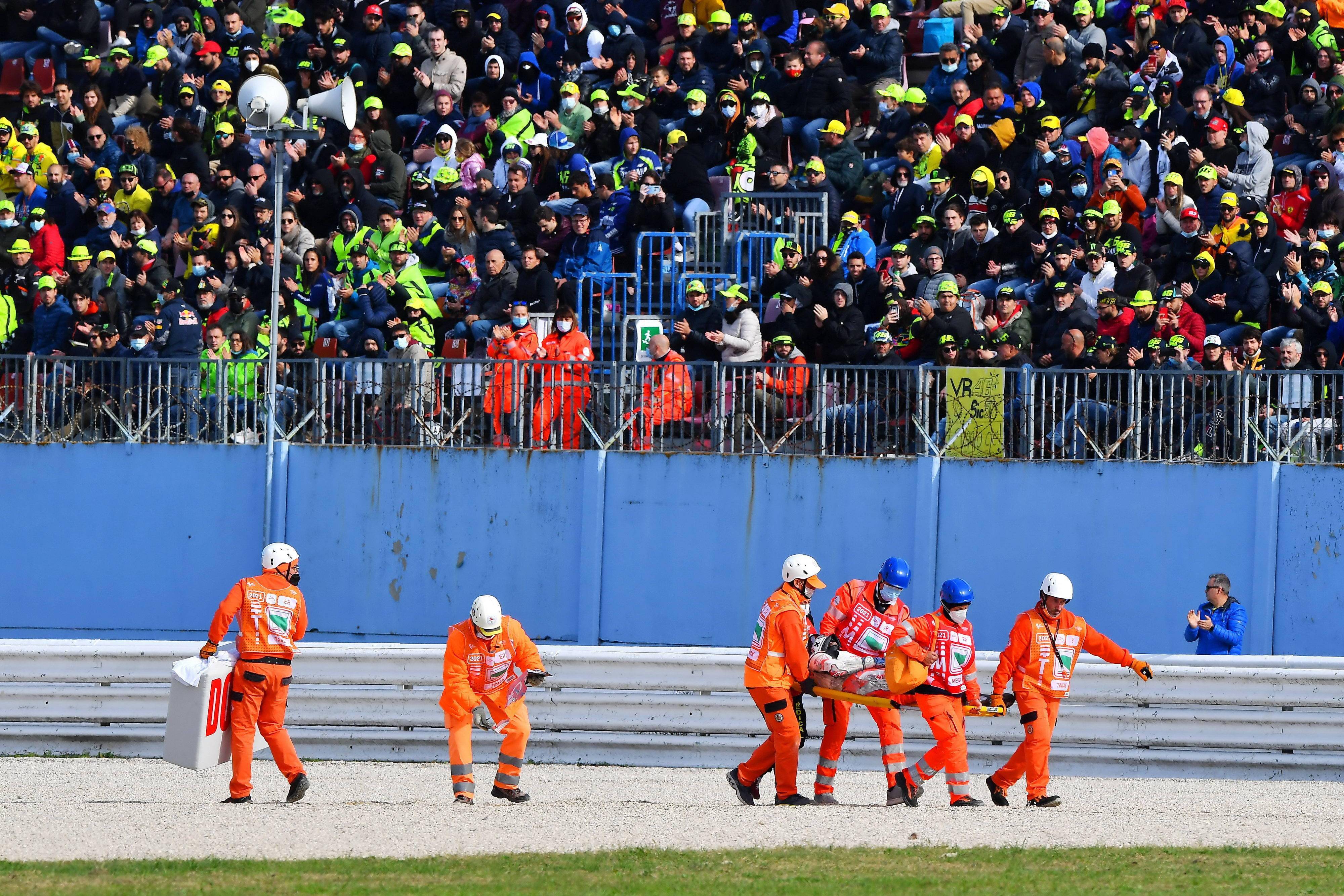 這是一場意外頻生的比賽,到比賽的上半場(第 13 圈)結(jié)束時,已經(jīng)有六位車手先后摔車并退出了比賽。