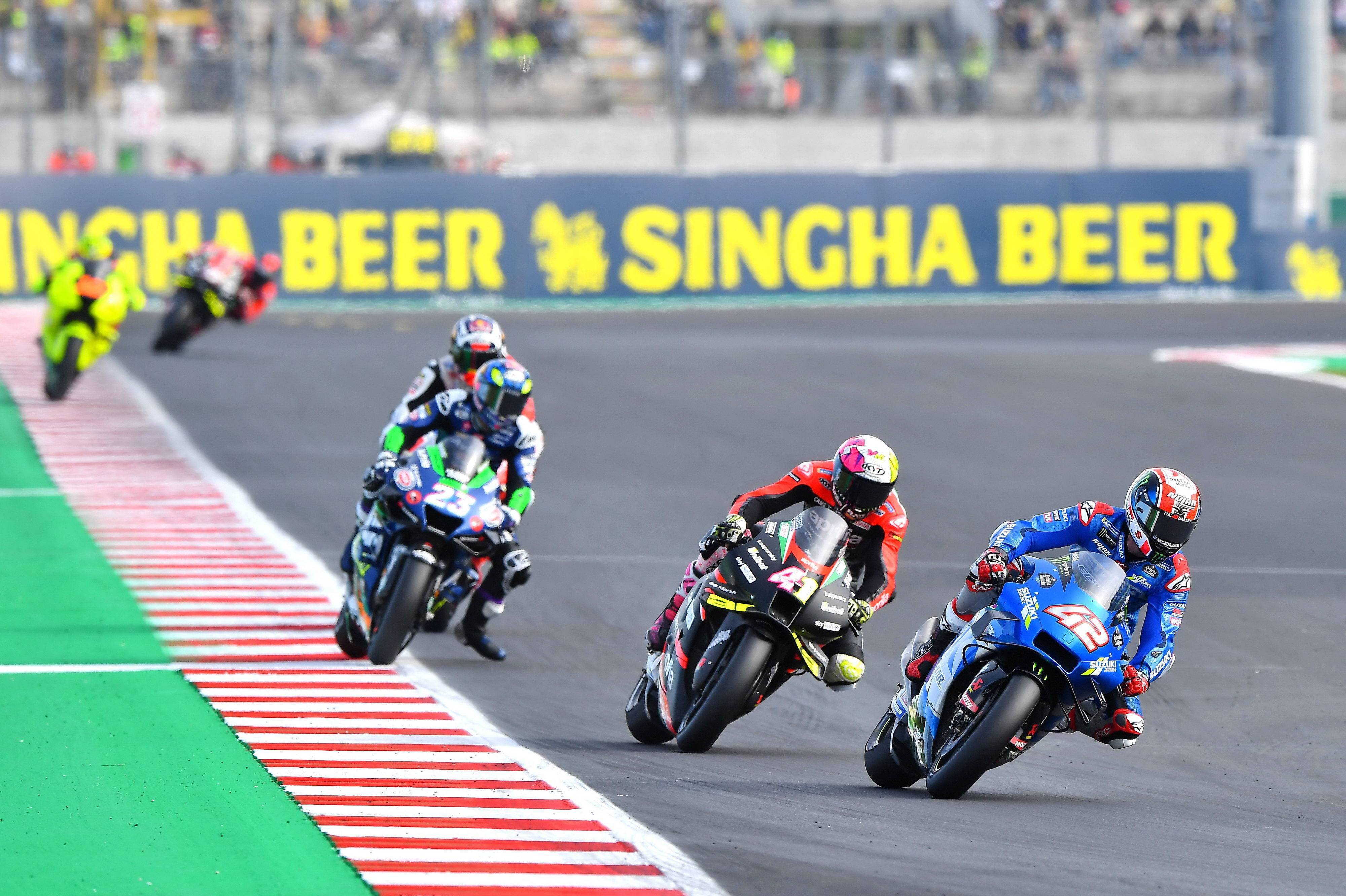 到第 4 圈,米勒摔車、退出了競爭。前面的巴納亞和小馬兩人就越跑越快,漸漸地形成了第一競爭集團(tuán)。到第 9 圈的比賽結(jié)束時,第一集團(tuán)領(lǐng)先于暫時排在第三位的小 E(Pol Espargaro,艾斯帕加羅)已經(jīng)達(dá)到了 3 秒。期待拿到自己職業(yè)生涯首次世界錦標(biāo)賽年度總冠軍頭銜的夸塔拉羅,此時則在中游的第 9 位,與多位車手進(jìn)行著纏斗。