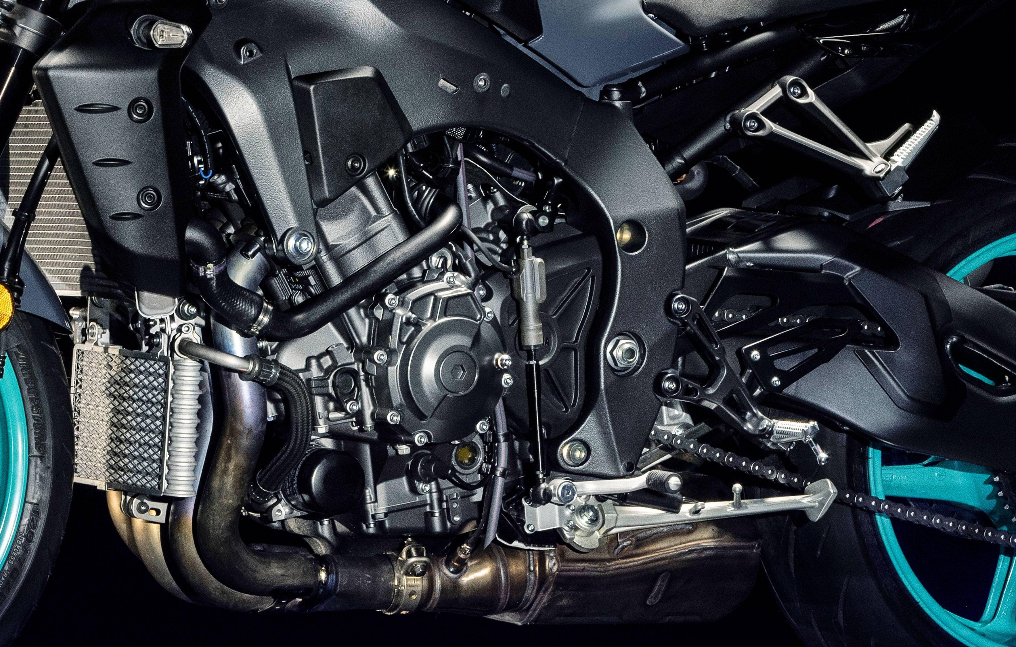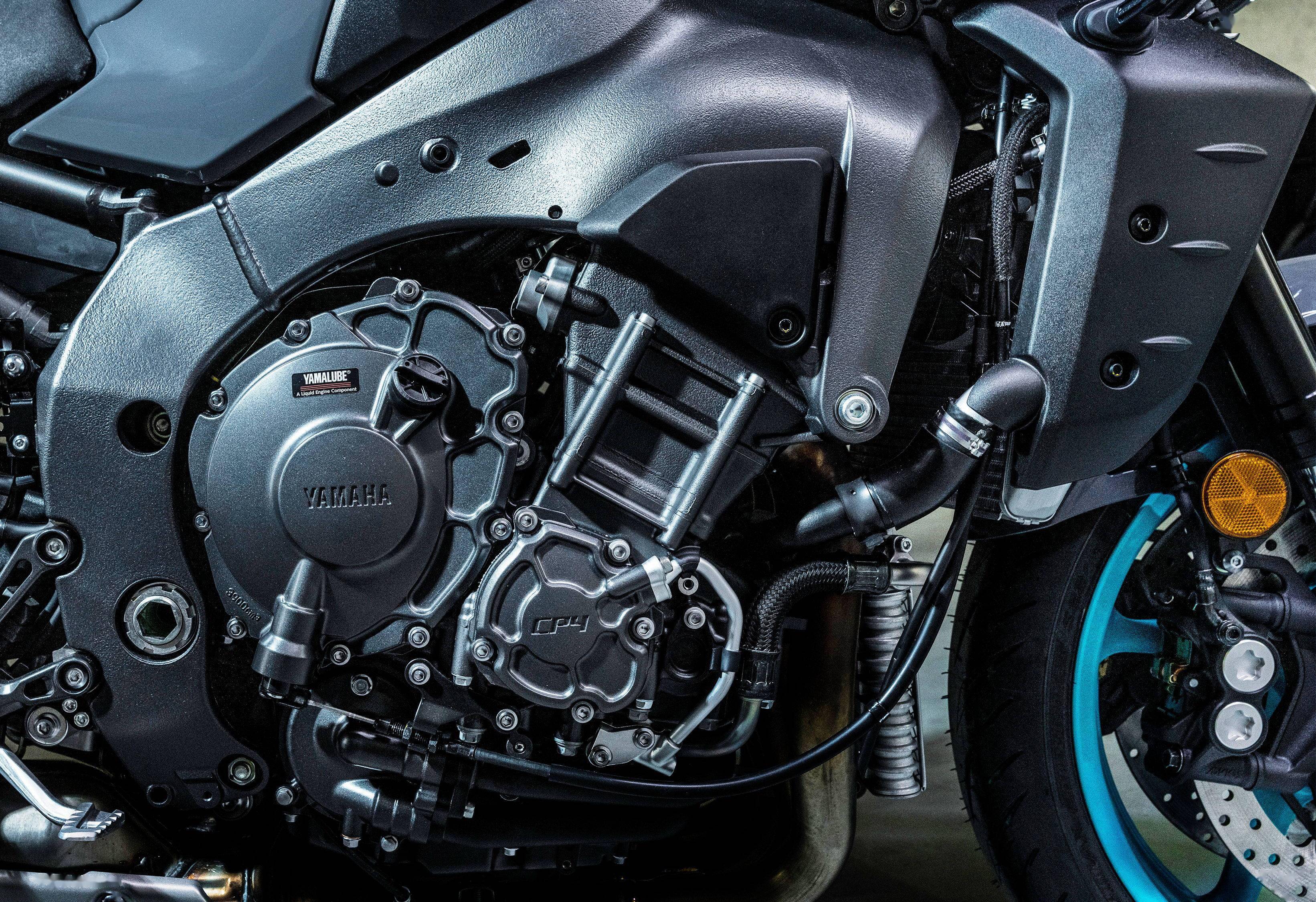 新的 MT-10 依舊搭載一副來(lái)自超級(jí)跑車 YZF-R1 為基礎(chǔ)修改而成直列四氣缸 CP4 發(fā)動(dòng)機(jī),缸徑、行程保持了與第一代 MT-10 相同的 79 mm x 59.9 mm,排氣量 998 cc,最大動(dòng)力輸出 122 kw(約 165.9 匹)。而第一代的 MT-10,最大動(dòng)力輸出為 118 kw(約 160.4 匹)。最大扭矩輸出,也從第一代的 111 Nm 提升至現(xiàn)在的 112 Nm。