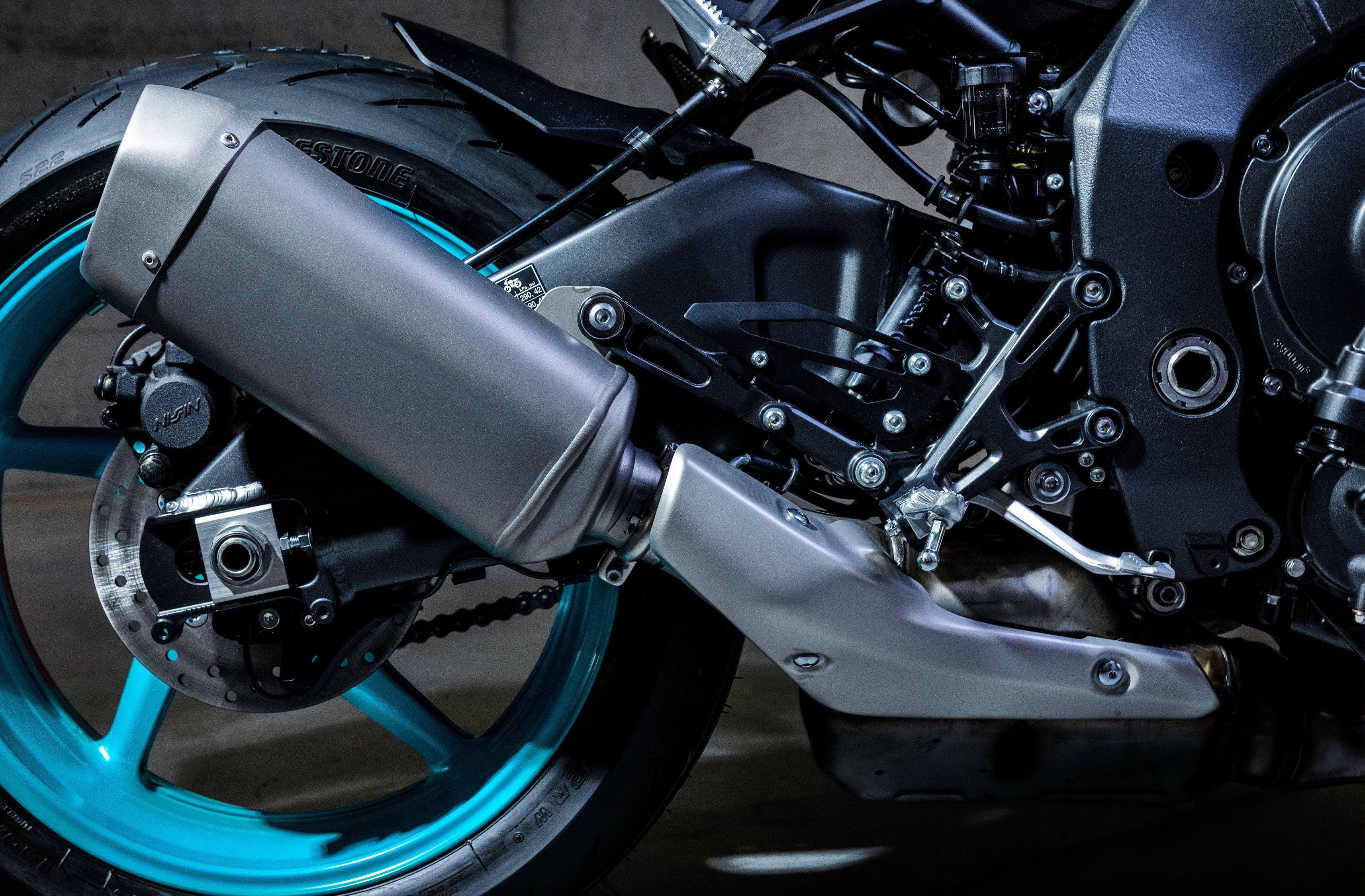 車體方面,沿用了原有的、采用了輕量化設(shè)計(jì)的 Deltabox 雙翼樑式的車架,承載式的設(shè)計(jì)、讓發(fā)動(dòng)機(jī)的曲軸箱成為了承力的一部分。這樣的設(shè)計(jì),讓車架在能夠降低重量的情況下、仍能承受 200 匹馬力級(jí)別的壓力。后搖臂經(jīng)過(guò)了輕微修改,車輛的軸距稍微加長(zhǎng)至 1,405 mm(第一代 MT-10 的軸距是 1,400 mm)。前后懸掛系統(tǒng)仍是來(lái)自 KYB 的配套,都具有可調(diào)的功能,第二代的 MT-10 在原有的基礎(chǔ)上、進(jìn)行了設(shè)置上的優(yōu)化。