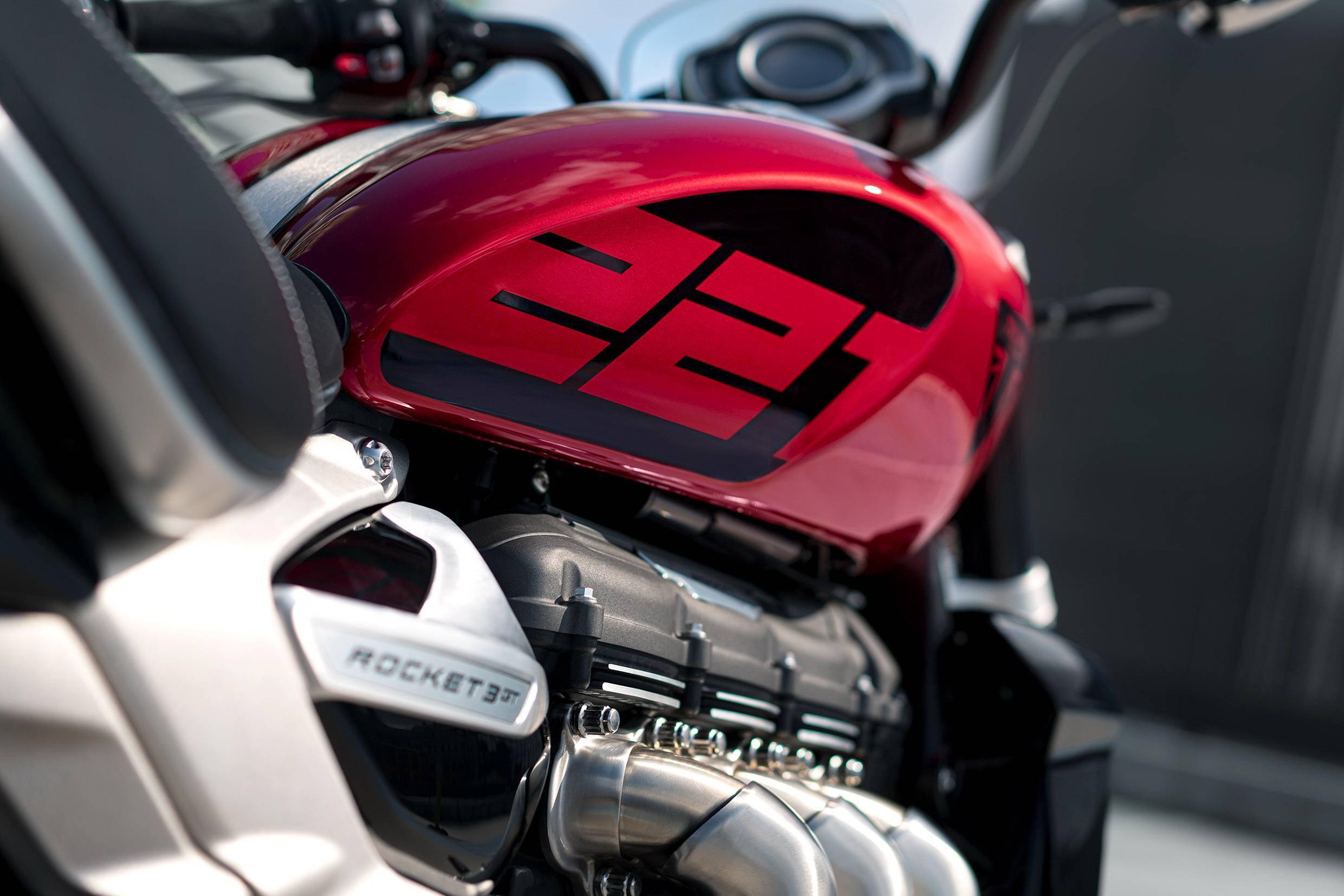 Rocket 3 R 和 Rocket 3 GT 火箭三系列的 221 特別版,其 221 這個名字的來源是這臺直列三氣缸機(jī)器高達(dá) 221 Nm 的扭矩輸出 —— Rocket 3 R 和 Rocket 3 GT 火箭三,搭載一副當(dāng)今全球量產(chǎn)摩托車中、排氣量最大的 2,458 cc 發(fā)動機(jī),最大馬力輸出 167 匹。與標(biāo)準(zhǔn)款相比,Rocket 3 R、Rocket 3 GT 的 221 特別版,主要的差異就是車身的圖案(貼花)。