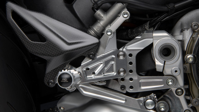 底盤方面,Streetfighter V4 SP配備了,高強(qiáng)度碳纖維輪轂,與Streetfighter V4 S的鍛造鋁輪轂相比,前后車輪都可以減輕1.4kg的重量,干重只有177kg。