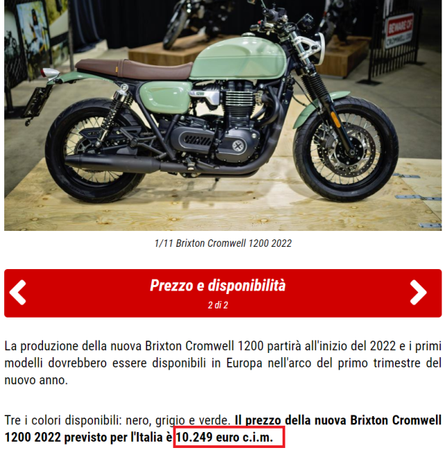 核心提示:還記得布雷斯通的公升級復古摩托車嗎?在國外的正式命名為Brixton 1200 Cromwell,而且疑似售價被曝光了。有外媒稱這款車的價格