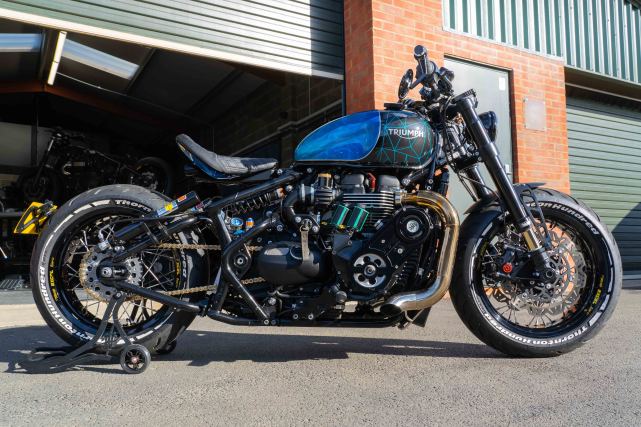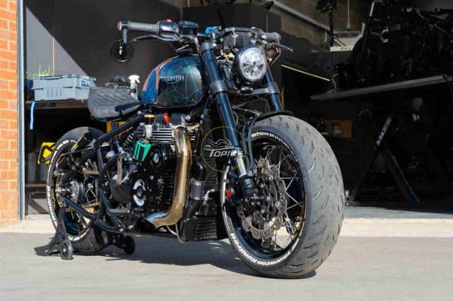 車架采用亮黑色飾面,油箱和尾部的油漆,由英國油漆專家Image Design Custom專門調制。還安裝了一組升級后的燈,同時為座椅提供了定制裝飾,并安裝了更輕巧的后車牌架和前擋泥板。