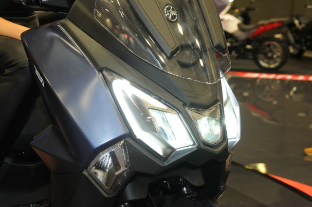雙頭燈變成了三頭燈的形式,更貼近當(dāng)家旗艦車型MAXSYM TL的車頭設(shè)計(jì),可能SYM以后也要開始走套娃路線了。