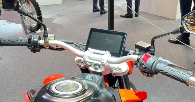 7英寸的TFT儀表格外扎眼,手把和屏幕上,沒有看到相關的操作按鍵,推測應該是具備觸控功能,從這個角度看油箱的設計也很“KTM”。